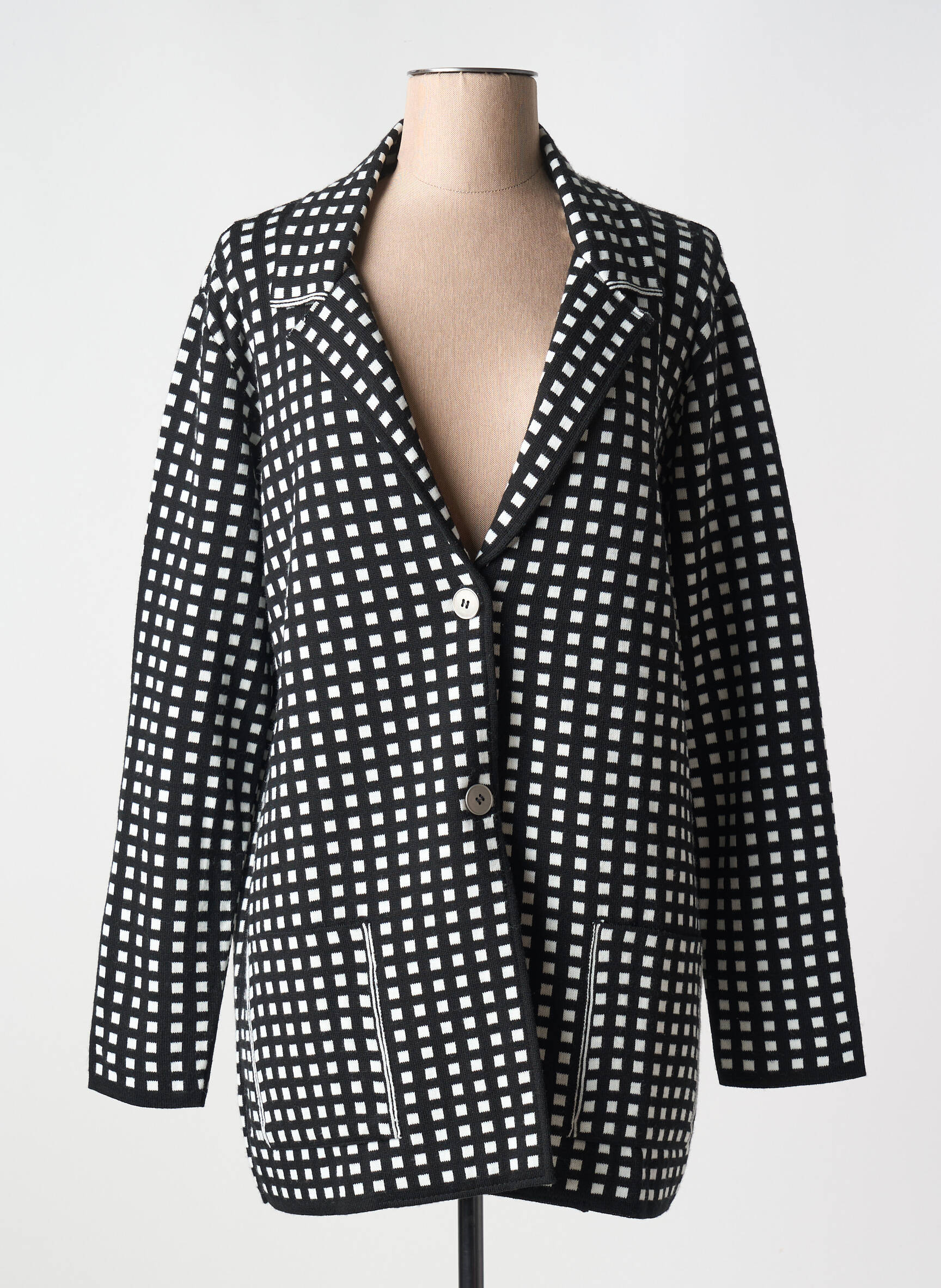 Profitez d’un vrai bon plan avec ce blazer SOPHIA CURVY pour femme, proposé à prix mini pour un look chic sans compromis. Sa coupe élégante met en valeur la silhouette, tandis que son motif à carreaux noirs et blancs lui apporte une touche tendance et graphique, idéale à associer aussi bien pour une journée de travail que pour une sortie. En plus de ses deux boutons contrastants et de ses larges poches pratiques à l’avant, il séduit par son allure unique et son style sophistiqué à petit prix.