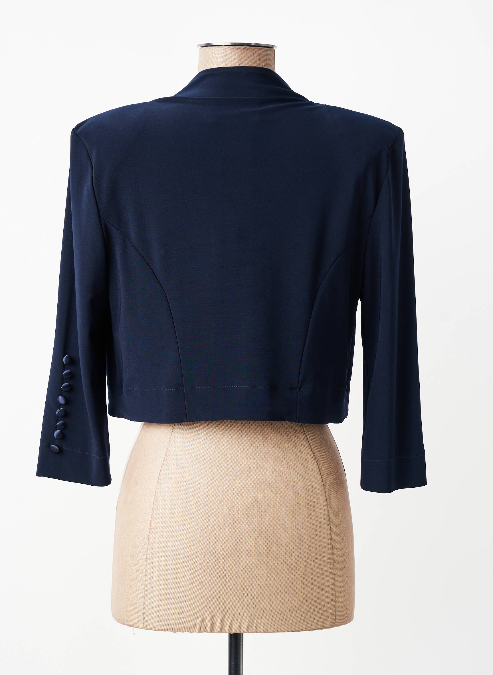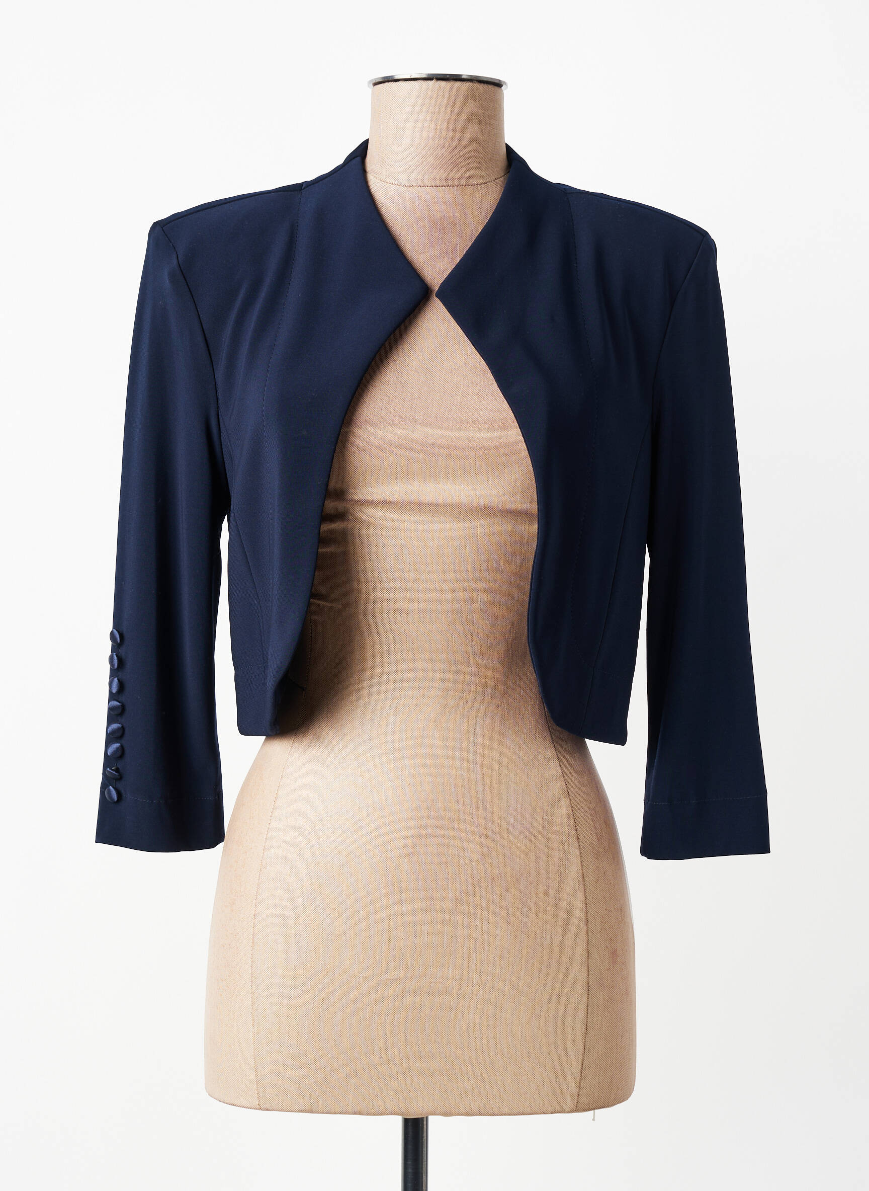 Profitez d’un véritable bon plan avec ce boléro de la marque JOSEPH RIBKOFF pour femme, une pièce chic et élégante à prix mini. Sa coupe courte et ajustée sublime toutes les silhouettes, tandis que sa teinte bleu nuit intemporelle permet de l’associer facilement aussi bien à une robe qu’à un pantalon. Les manches trois-quarts et la finition boutonnée sur le poignet ajoutent une touche sophistiquée, idéale pour rehausser n’importe quelle tenue sans se ruiner.