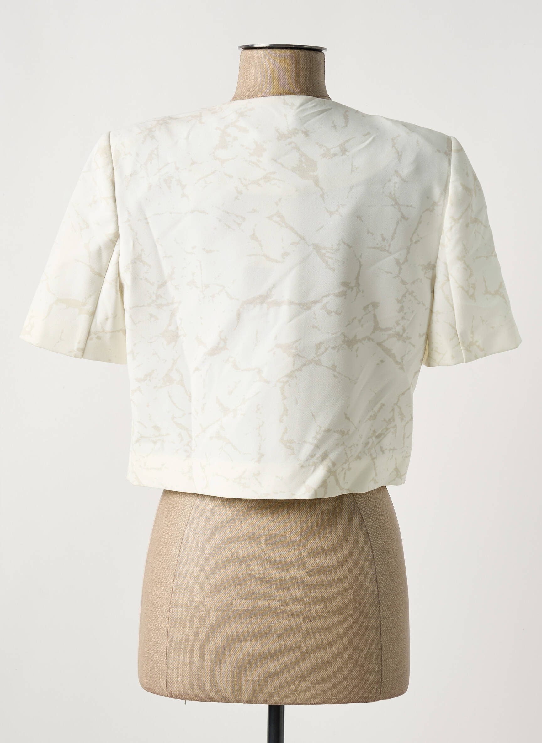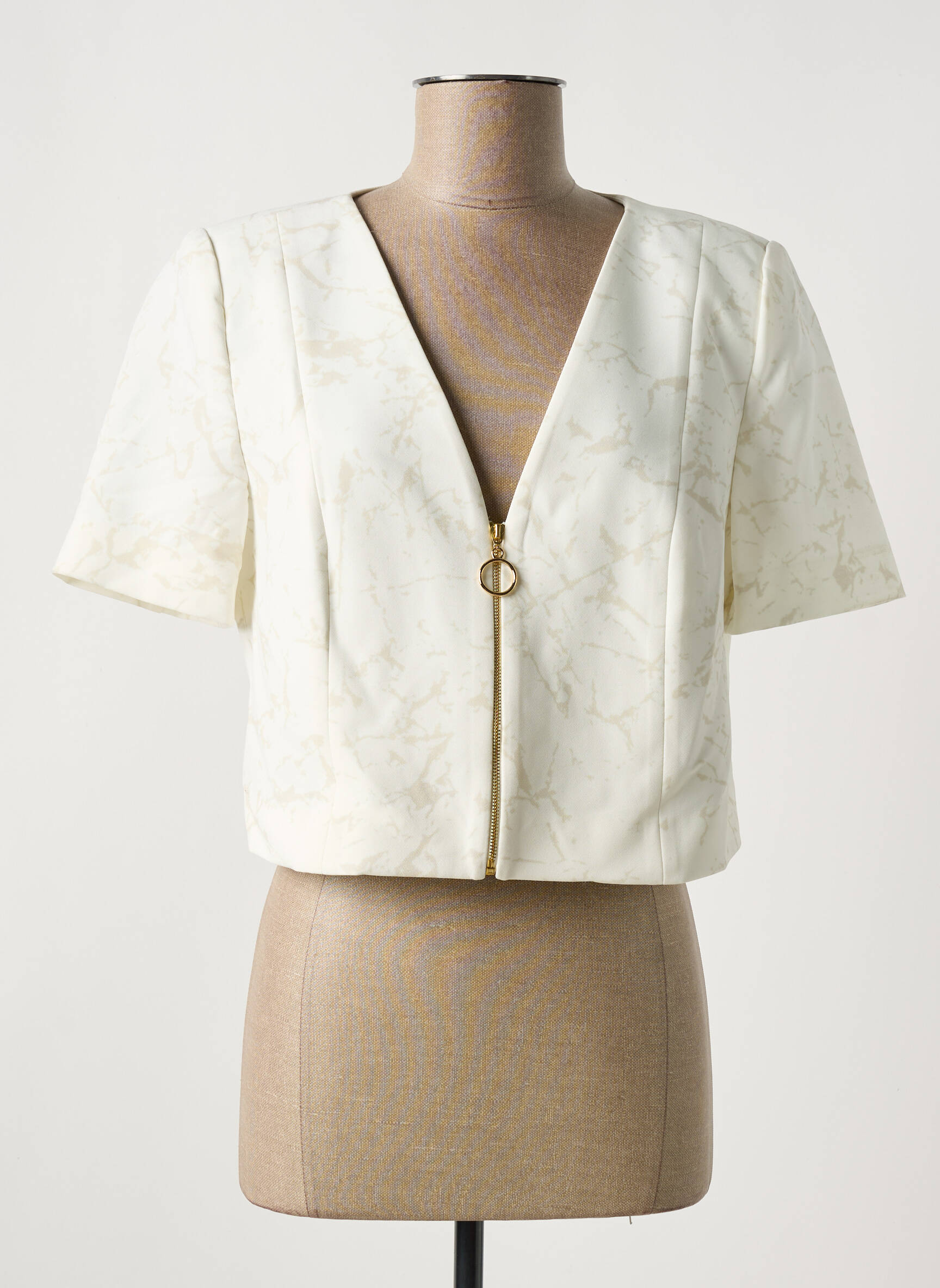 Craquez pour ce boléro MERI & ESCA pour femme à prix tout doux, parfait pour mise en valeur de vos tenues sans vous ruiner. Avec sa coupe courte élégante, ses manches courtes et son tissu au subtil motif texturé, il s’associe aussi bien à une robe habillée qu’à un jean pour un look raffiné et moderne. Sa fermeture zippée ornée d’un anneau doré ajoute une note tendance, idéale pour une allure chic à petit prix.