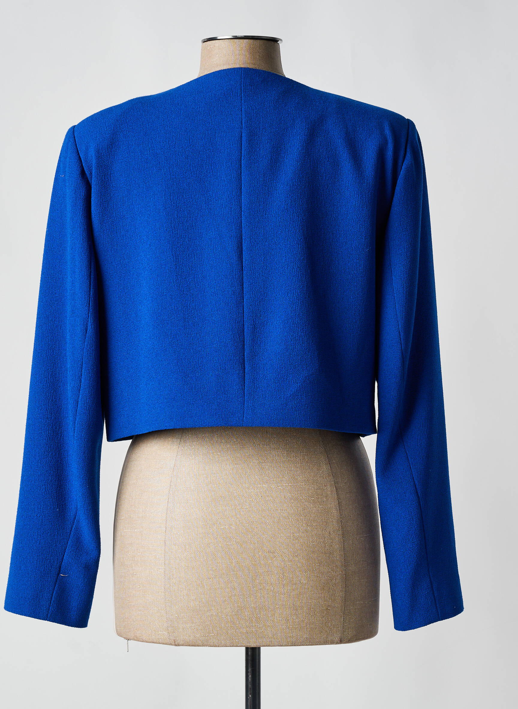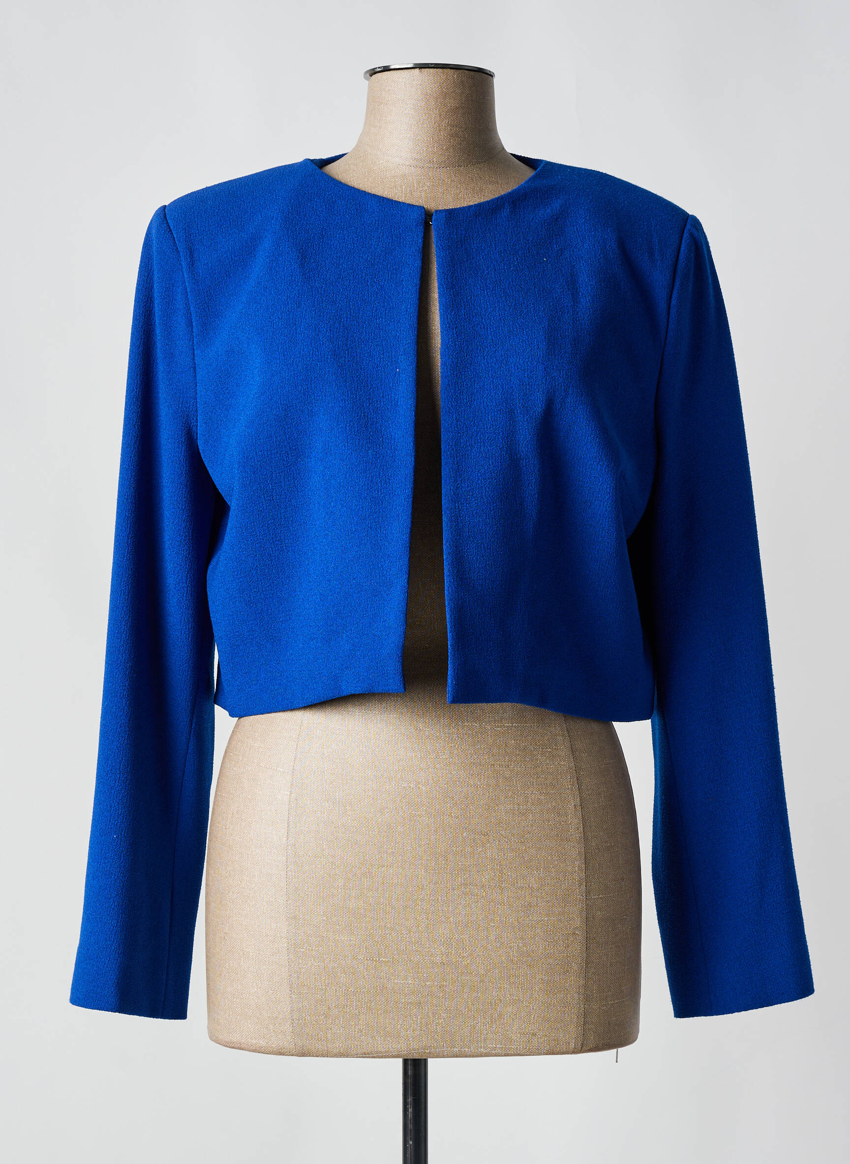 Pour sublimer ce boléro, envisagez de l'associer à une blouse blanche fluide et un pantalon noir ajusté pour un look à la fois classique et contemporain. Pour une touche décontractée, optez pour un t-shirt léger et un jean taille haute, idéal pour une sortie entre amis. Ajoutez des accessoires dorés pour une belle harmonie avec la teinte bleue et complétez l'ensemble avec des escarpins ou des sandales élégantes. En soirée, glissez-le par-dessus une robe midi pour créer un contraste chic, tout en restant confortable.