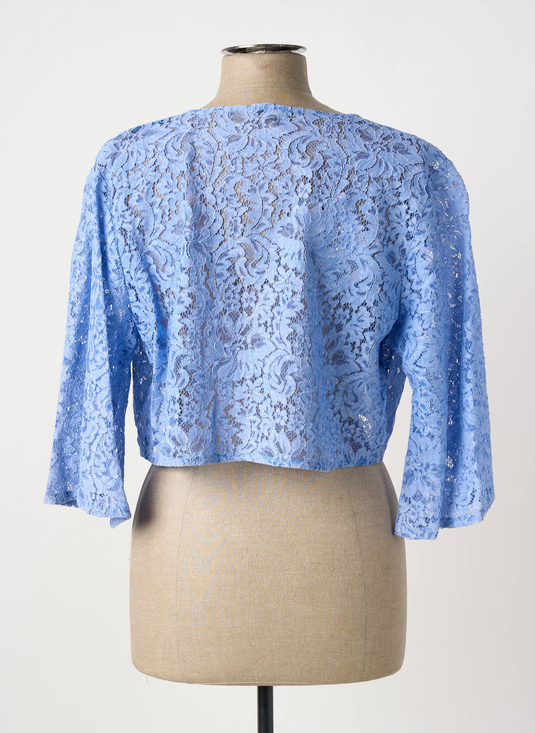 Profitez d'une belle opportunité pour rehausser votre look avec ce boléro PAUL BRIAL pour femme, proposé à prix tout doux. Sa délicate dentelle bleu pastel et sa coupe courte à manches trois-quarts en font une pièce idéale pour habiller instantanément une robe ou un top simple lors de vos occasions spéciales, tout en apportant une touche de raffinement légère et féminine sans vous ruiner.