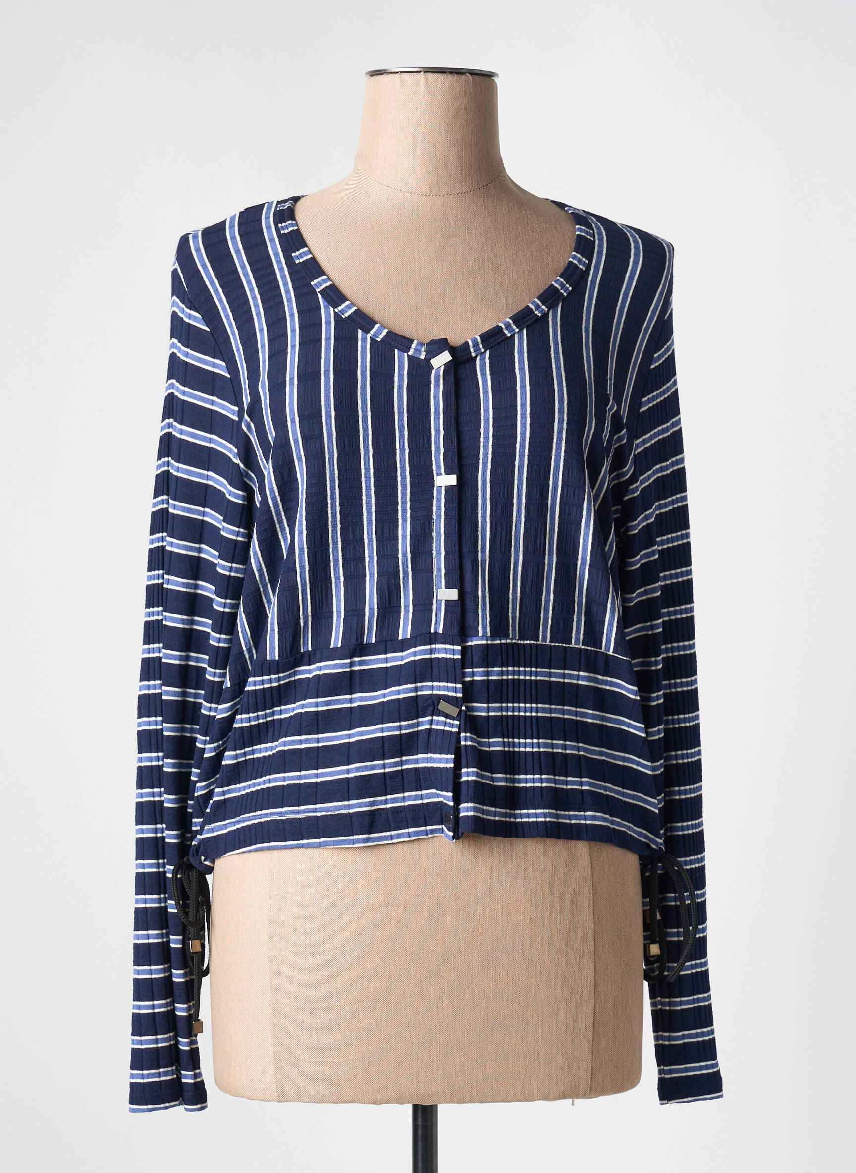 Craquez pour cette veste casual 3322 pour femme, une pièce ultra tendance à petit prix, parfaite pour celles qui veulent renouveler leur dressing sans se ruiner. Son design à rayures verticales et horizontales dans des tons bleus et blancs lui apporte une touche moderne et décontractée, idéale pour sublimer vos tenues du quotidien tout en réalisant une vraie économie sur cet indispensable de la mi-saison.