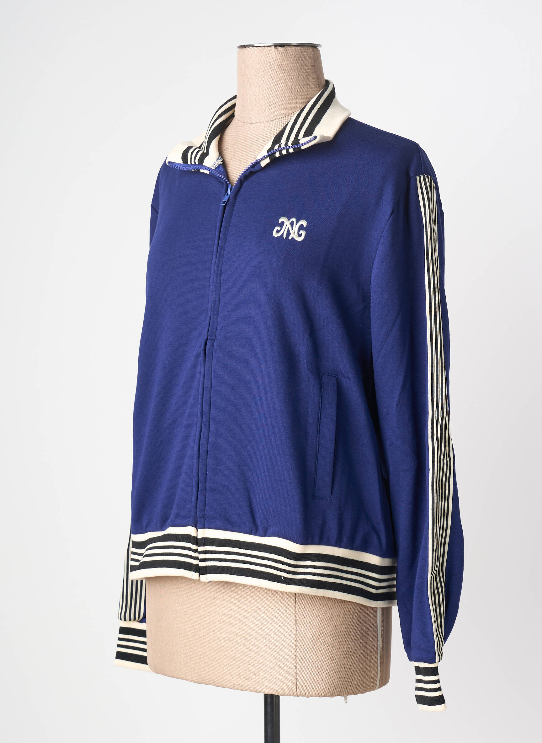 Profitez d'un vrai bon plan avec cette veste casual signée AN'GE, idéale pour apporter une touche moderne et sportive à votre garde-robe sans vous ruiner. Son bleu profond est relevé par des détails rayés contrastés au col, aux poignets et à la base, tandis que la fermeture zippée pratique et le logo discret sur la poitrine offrent une allure dynamique et élégante au quotidien. N'attendez plus pour vous faire plaisir à prix tout doux, cette veste est une opportunité à saisir pour un style tendance à petit budget.