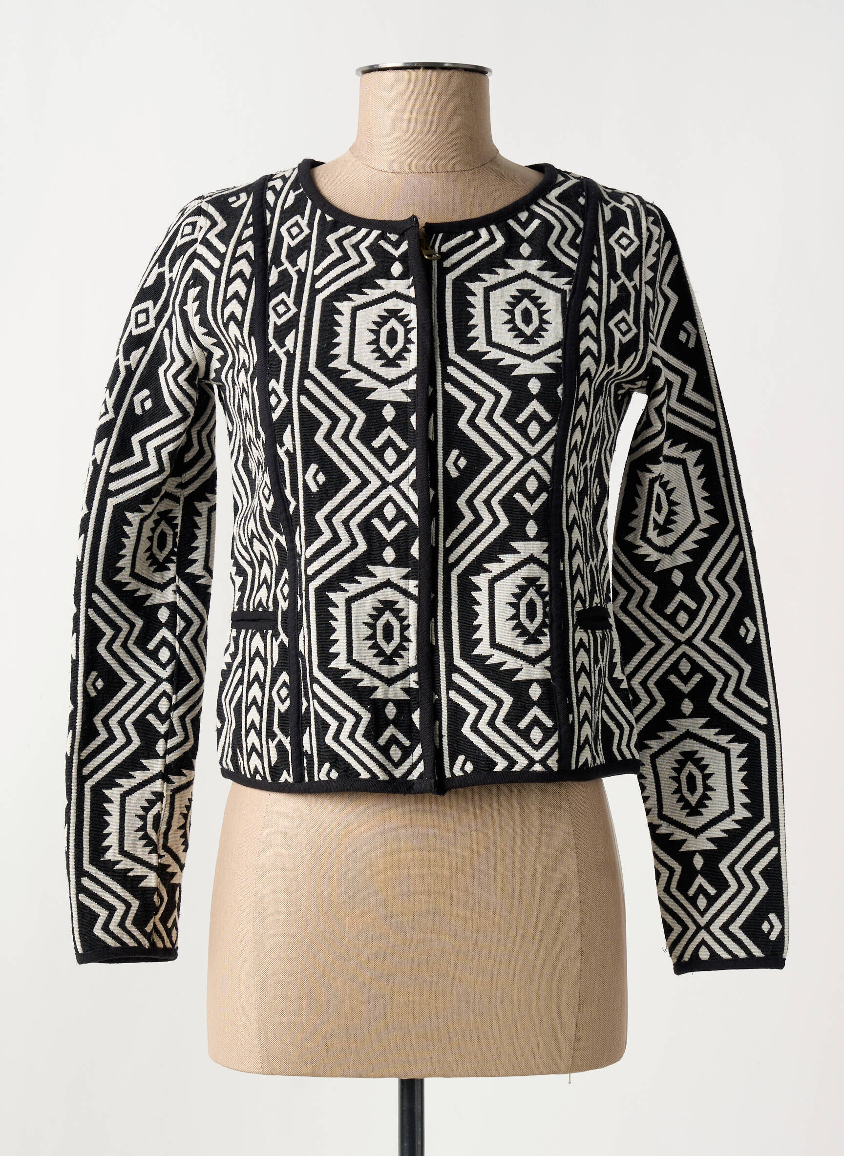 Craquez pour cette veste casual BAMBOO'S pour femme, un vrai bon plan pour apporter une touche d'originalité à votre garde-robe sans vous ruiner. Son motif graphique noir et blanc d'inspiration ethnique s'adapte parfaitement à toutes vos tenues, du jean décontracté à la petite robe classique, pour une allure tendance et moderne à prix tout doux. N’attendez plus pour profiter de cette pièce stylée et unique, idéale pour faire sensation tout en maîtrisant votre budget !
