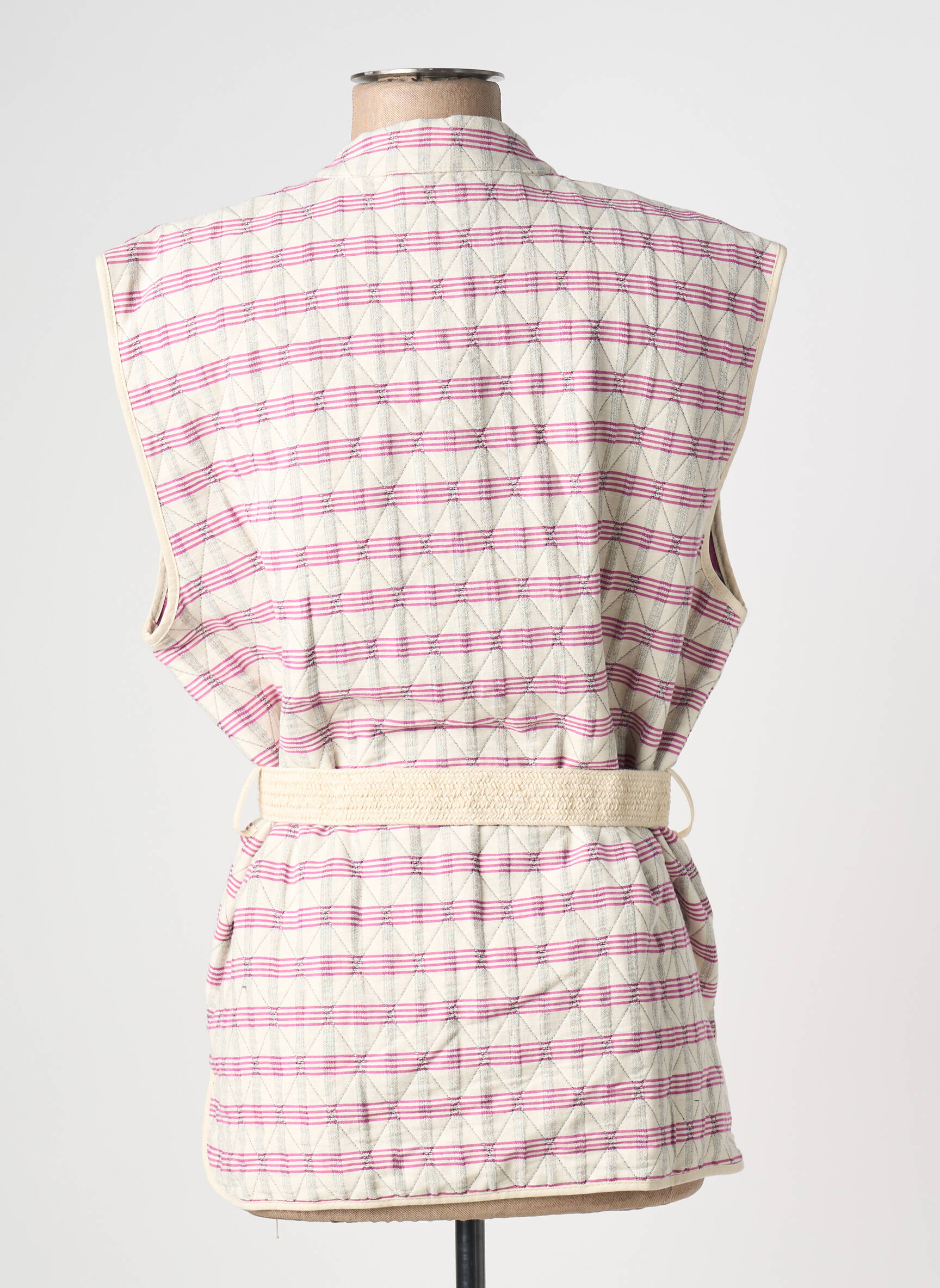 Craquez pour cette veste casual signée CHLOÉ STORA, une pièce unique à prix doux qui viendra dynamiser votre garde-robe sans vous ruiner. On adore sa coupe ample sans manches, ses rayures délicates aux tons roses et écrus qui apportent fraîcheur et modernité, et sa ceinture à nouer qui sublime la silhouette tout en offrant un style décontracté et féminin. Son boutonnage doré et ses finitions soignées offrent une touche raffinée, parfaite pour compléter vos looks du quotidien avec élégance tout en profitant d’une véritable bonne affaire.