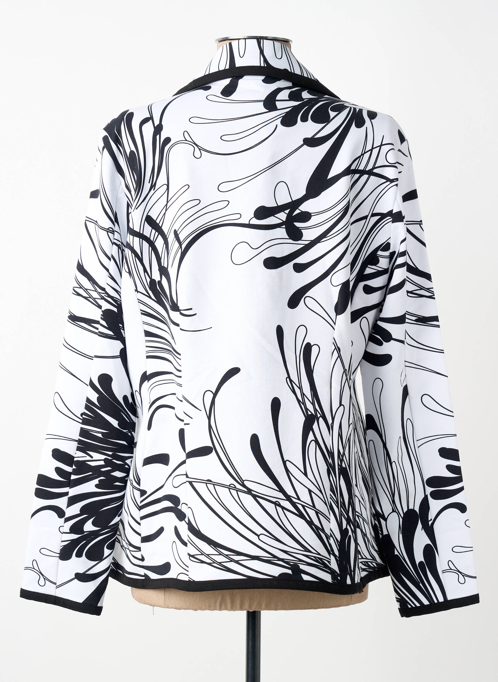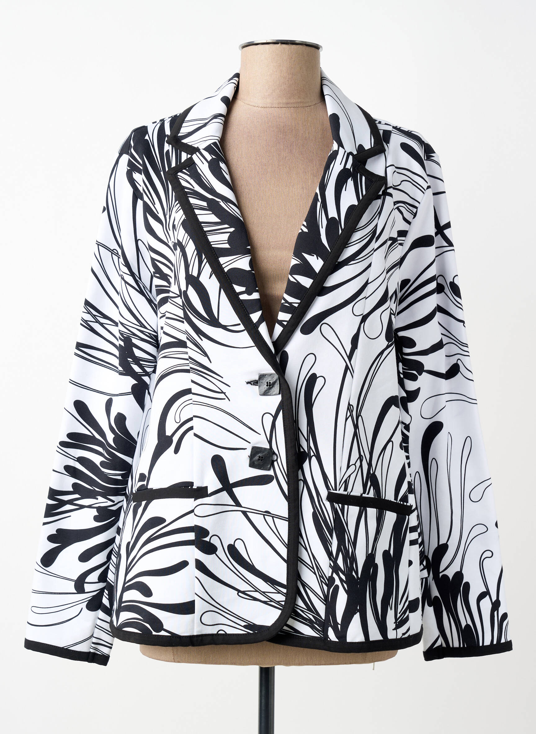 Saisissez une occasion unique de vous offrir cette veste casual de la marque DOLCEZZA à prix mini, idéale pour apporter une touche artistique et sophistiquée à votre dressing. Son motif graphique noir et blanc habille élégamment la coupe classique, soulignée par un col à revers et des finitions contrastées pour un look dynamique, parfait au quotidien comme lors de vos sorties. Voilà une veste qui allie style et petit prix, une vraie bonne affaire à ne pas manquer !