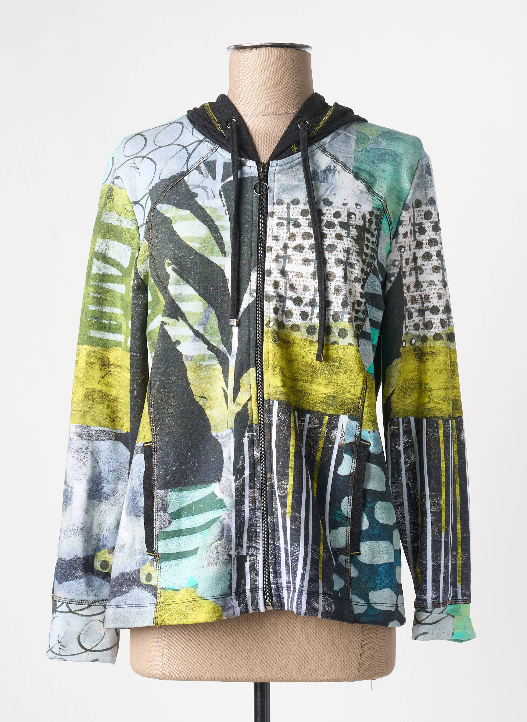 Craquez pour cette veste casual signée DOLCEZZA, une véritable pépite à petit prix qui allie originalité et style pour sublimer votre quotidien. Son imprimé artistique aux accents vert, jaune et bleu apporte une touche moderne et dynamique à toutes vos tenues, tandis que la coupe confortable et la capuche à cordon garantissent un look détendu, idéal pour toutes les occasions. C’est l’opportunité parfaite pour enrichir votre garde-robe avec une pièce de marque tendance sans vous ruiner grâce à notre sélection déstockage !