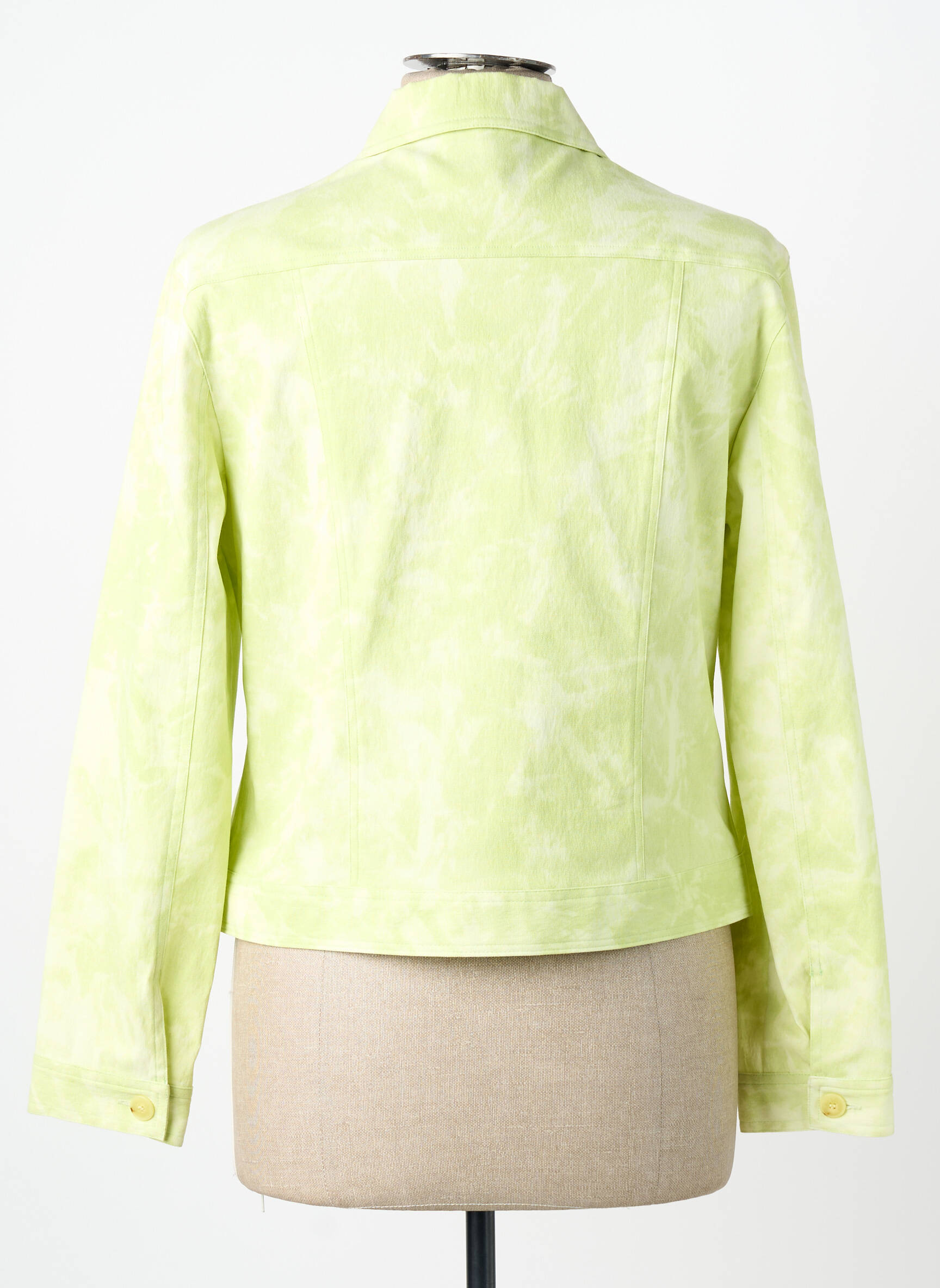 Cette veste se porte facilement ouverte sur un t-shirt blanc pour un effet lumineux, ou fermée pour une silhouette plus structurée. Elle se marie aussi très bien avec un jean clair ou une jupe en denim, et trouve facilement sa place avec des baskets ou des mocassins pour un style urbain et moderne. Pour un look plus affirmé, un pantalon fluide ou un short taille haute mettront parfaitement en valeur sa couleur originale, tout en gardant une allure chic et décontractée.