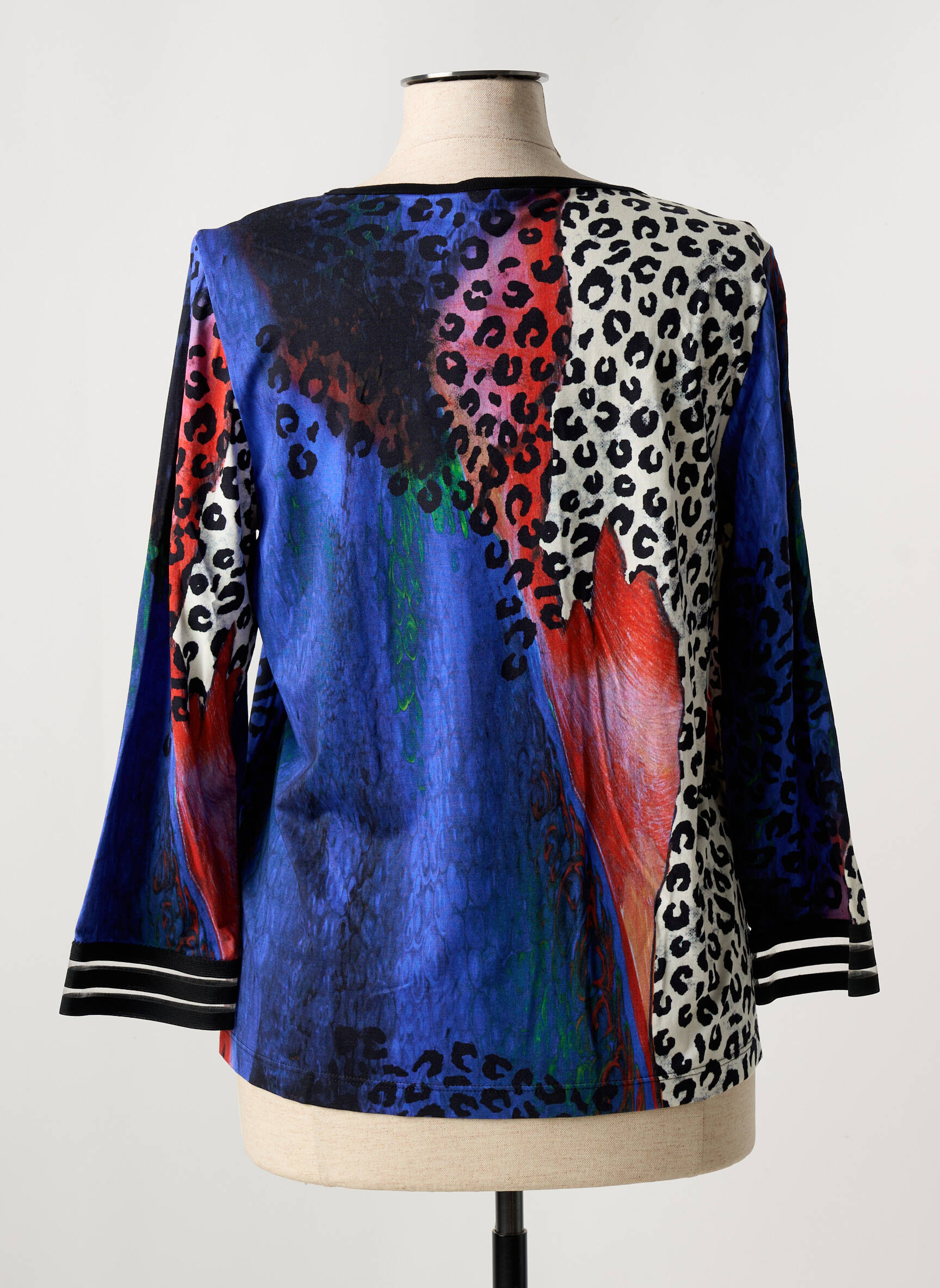 Craquez pour cette veste casual de la marque FILIPINE LAHOYA, un véritable bon plan pour ajouter une touche d’originalité à votre dressing sans vous ruiner. Sa coupe fluide met en valeur un imprimé multicolore aux motifs animaliers et graphiques audacieux, tandis que les manches légèrement amples et les poignets contrastés à rayures apportent une touche moderne et tendance. C’est le choix parfait pour celles qui veulent arborer un look chic et décontracté à prix mini.