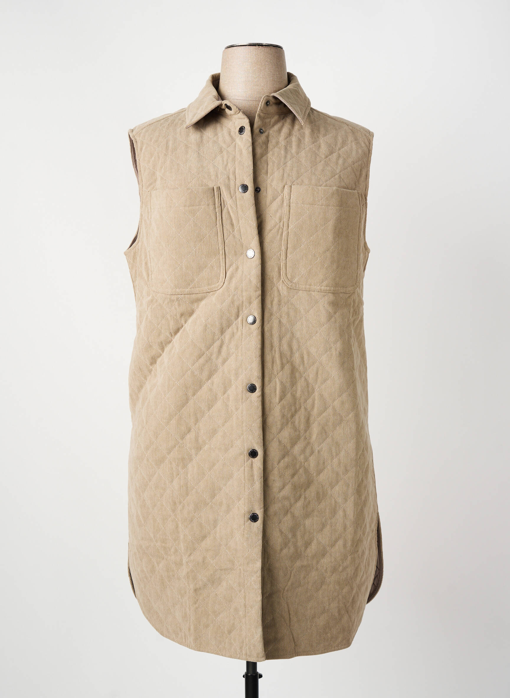 Profitez d’une pièce chic à prix mini avec cette veste sans manches signée FRED SABATIER, idéale pour sublimer vos looks avec une touche d’élégance sans vous ruiner. Son matelassage raffiné et sa coupe longue apportent du caractère et de la modernité, tandis que ses poches plaquées et ses boutons soignés combinent style et praticité, pour une allure tendance à petit prix.