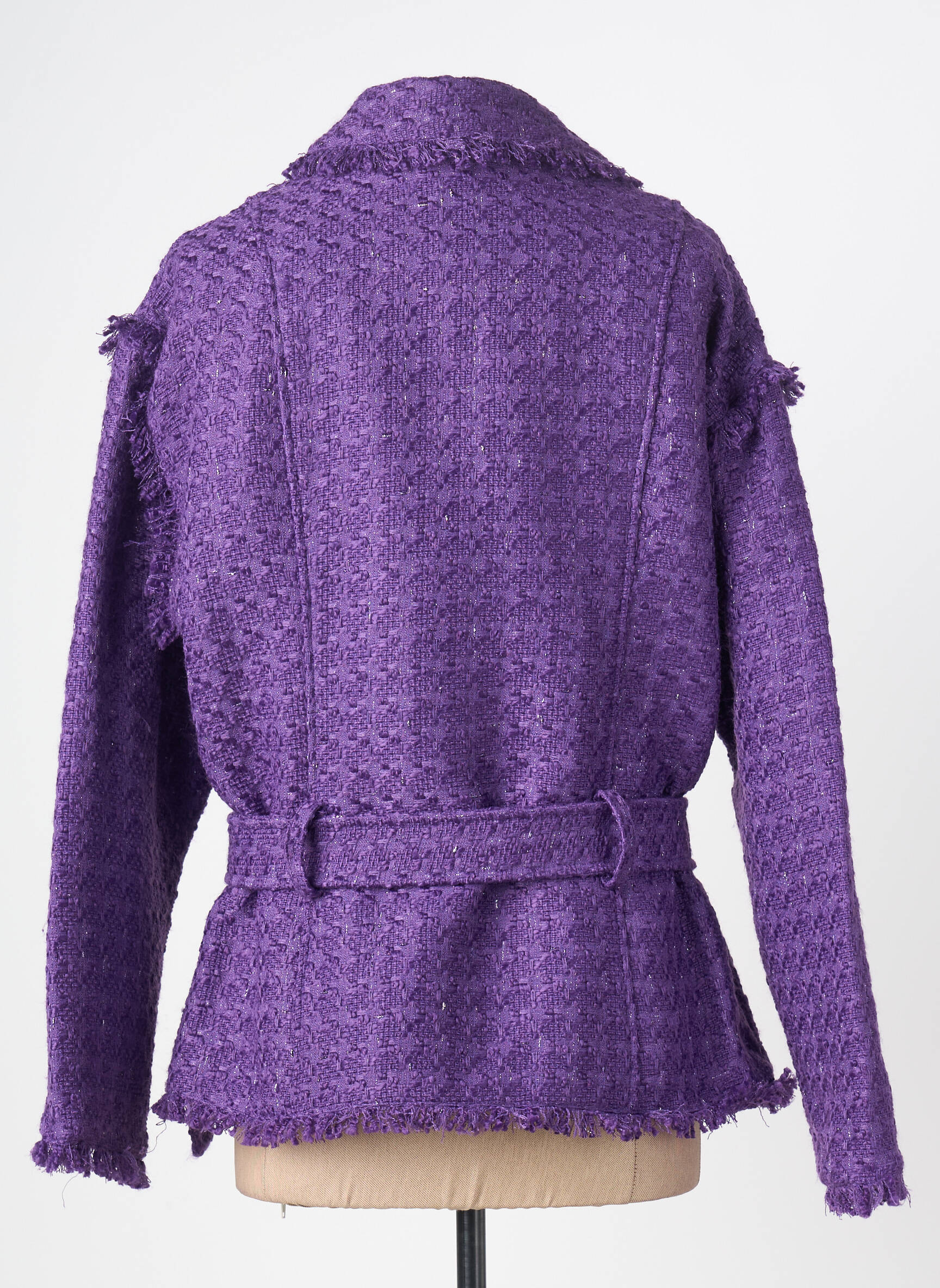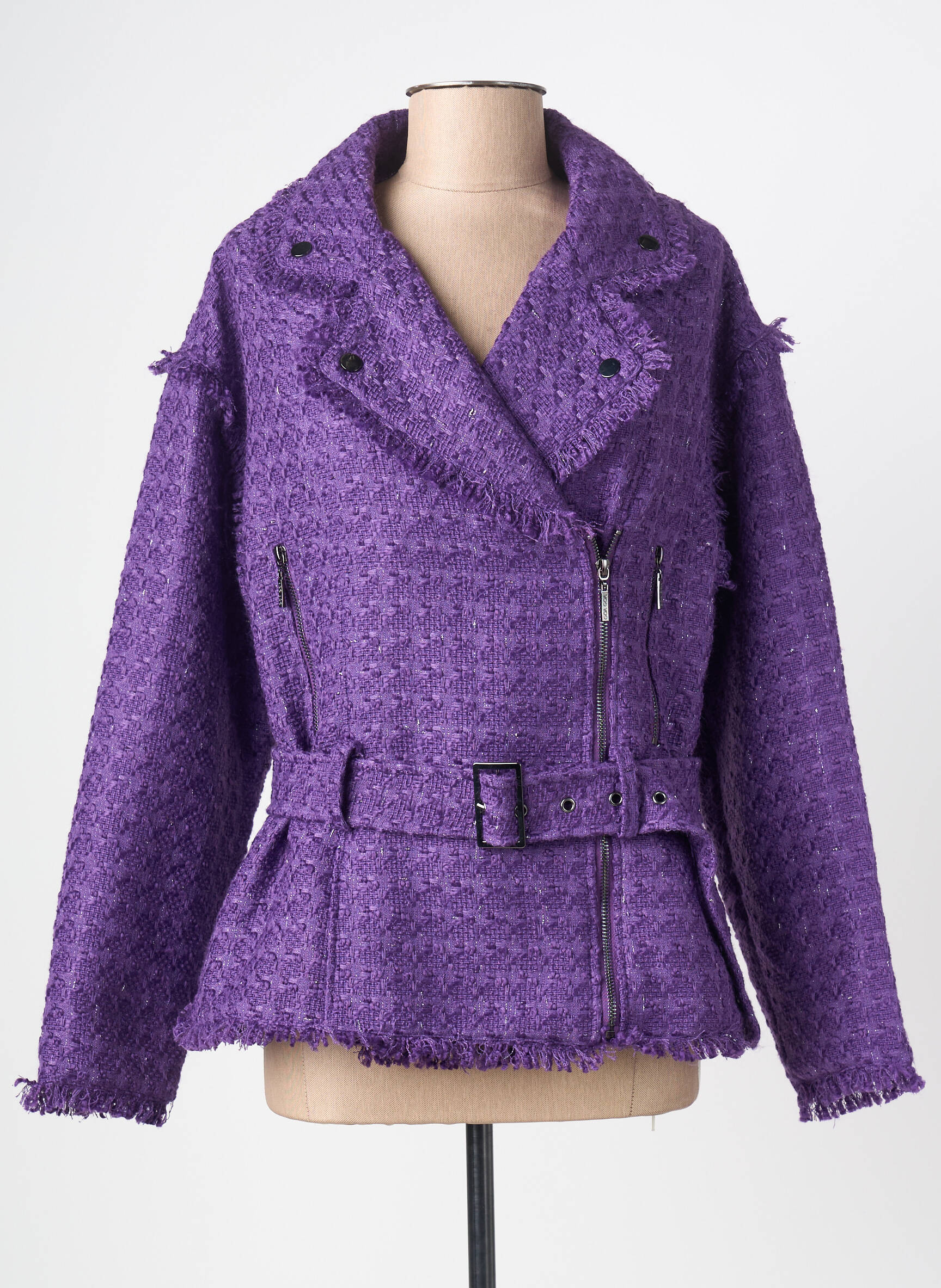 Profitez d'une affaire exceptionnelle avec cette veste casual pour femme de la marque GOA GOA, qui propose un style tendance à prix mini. Sa couleur violette apporte une touche d’originalité à toutes vos tenues, tandis que sa coupe légèrement oversize et sa ceinture à la taille subliment la silhouette avec élégance. Les détails métalliques, le tissu texturé et les finitions frangées ajoutent un esprit chic et moderne, parfait pour se démarquer sans se ruiner.