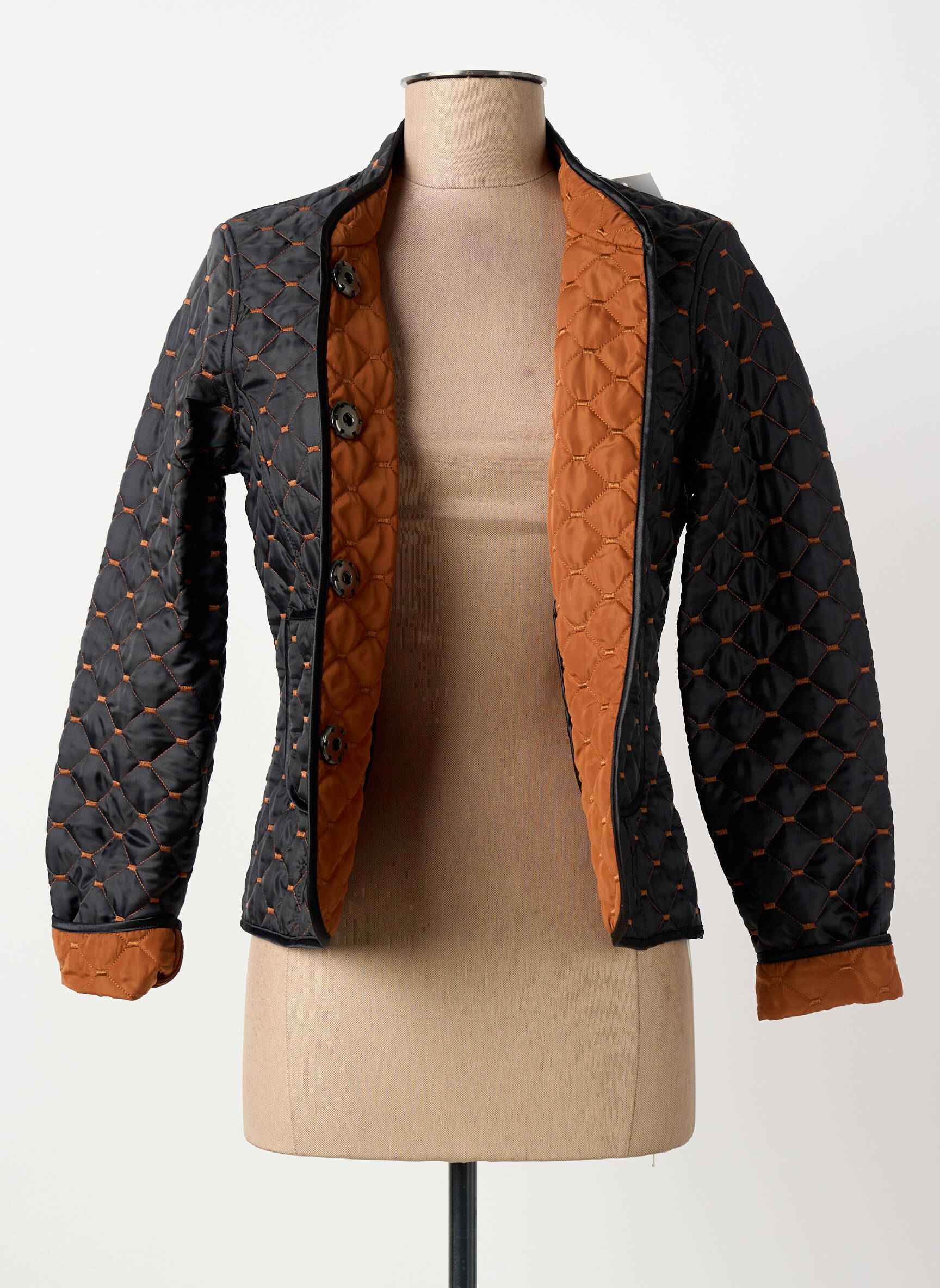 Profitez d’une véritable affaire avec cette veste casual pour femme signée GREGORY PAT, dont le matelassage graphique noir rehaussé de surpiqûres colorées et sa doublure contrastée apportent une touche sophistiquée et originale à petit prix. Son design structuré, ses boutons élégants et ses revers de manches visibles en font un choix idéal pour sublimer vos looks du quotidien tout en réalisant de belles économies sur une pièce de créateur.