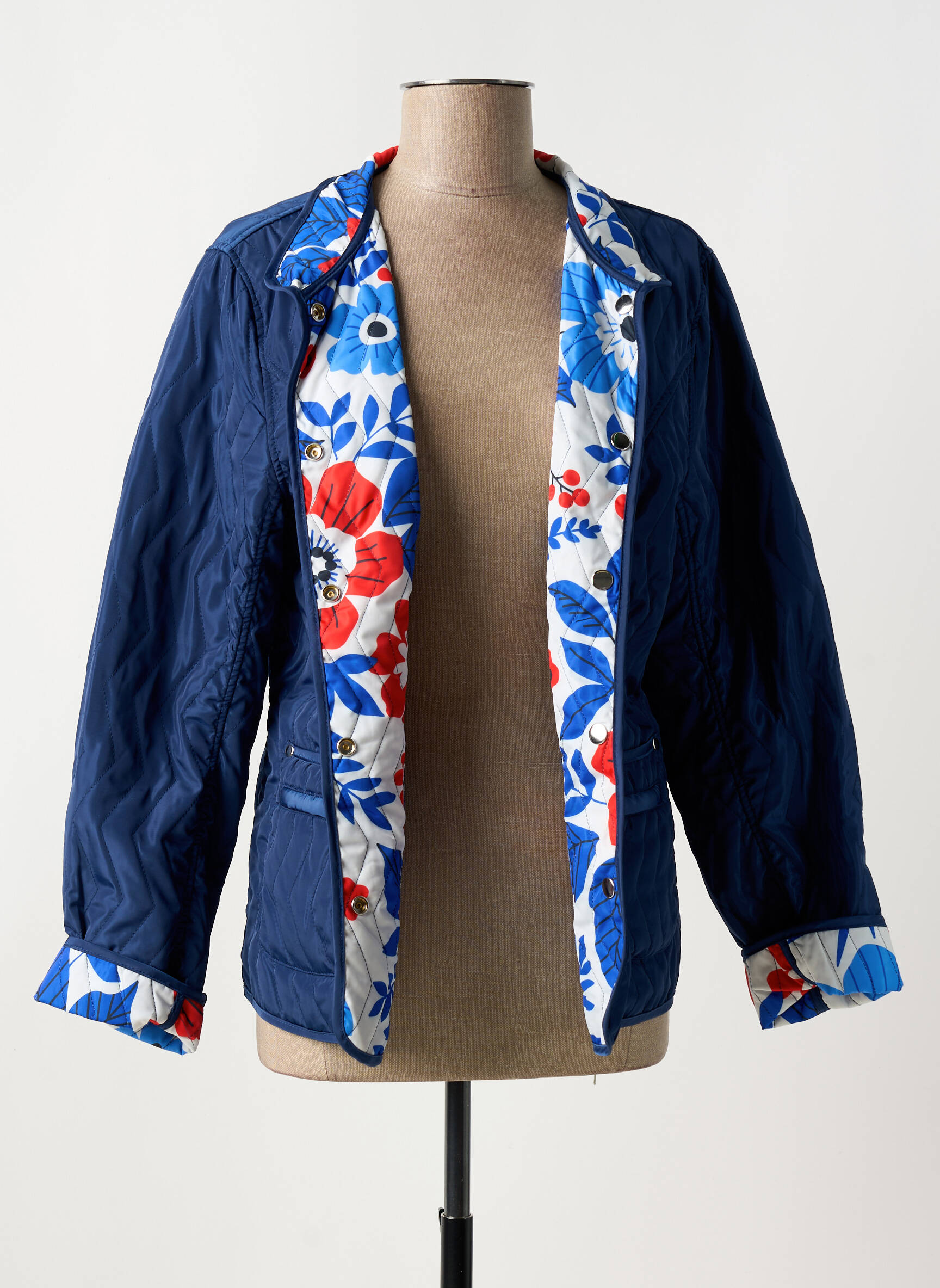 Profitez d’un vrai bon plan avec cette veste casual de la marque GUY DUBOUIS pour femme, idéale pour ajouter une touche originale à votre dressing sans vous ruiner. Son extérieur bleu marine sobre contraste joliment avec une doublure fleurie aux couleurs éclatantes qui apporte fraîcheur et modernité, tandis que les détails retournés au col et aux poignets révèlent discrètement ce motif tendance. Parfaite pour dynamiser une tenue du quotidien ou accompagner une balade citadine, cette veste à prix mini allie confort et style sans compromis.