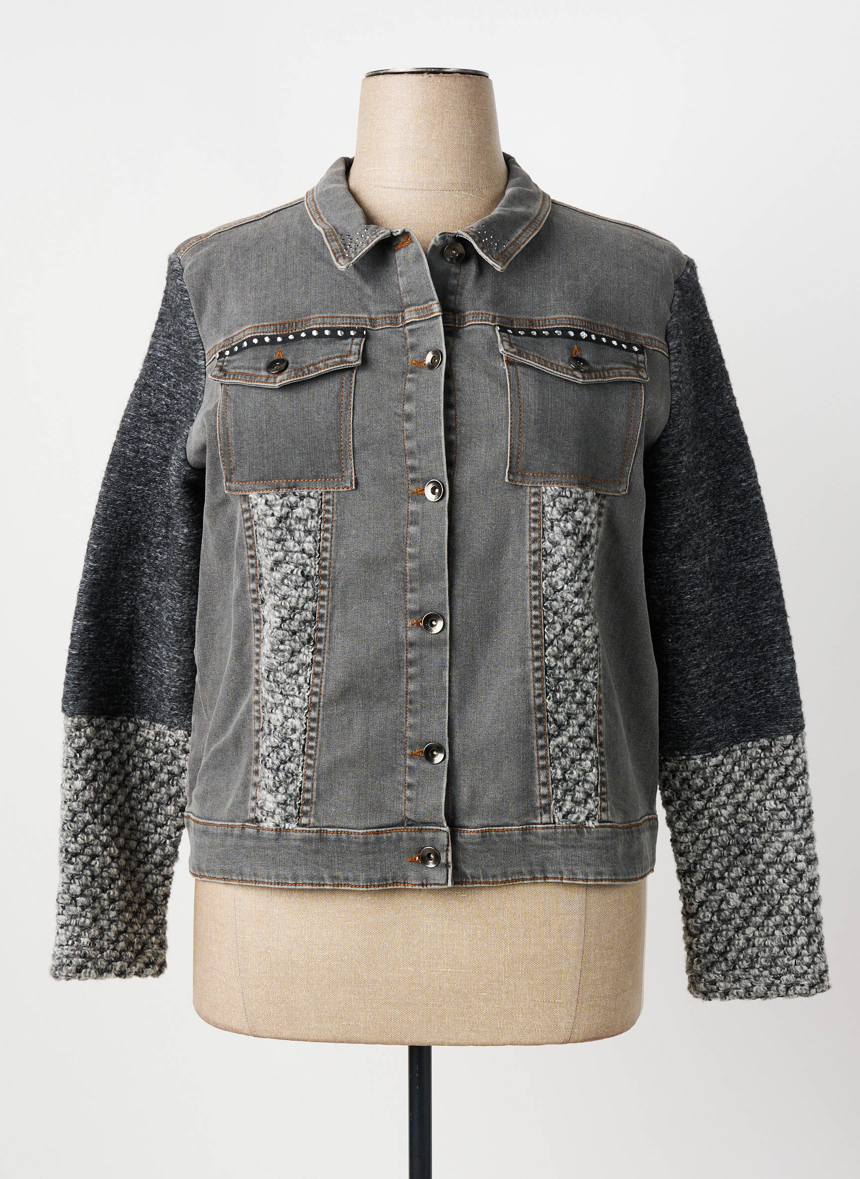 Profitez d’un véritable bon plan avec ce gilet manches longues pour femme signé GUY DUBOUIS, qui combine avec originalité un tissu effet denim gris et des empiècements tricotés. Son look tendance est dynamisé par les détails contrastés sur les manches et des touches métalliques au niveau des poches poitrine, offrant une pièce unique à petit prix pour renouveler votre dressing sans vous ruiner. Ne manquez pas cette occasion d’ajouter une touche d’originalité et de style à vos tenues du quotidien, tout en réalisant de belles économies.