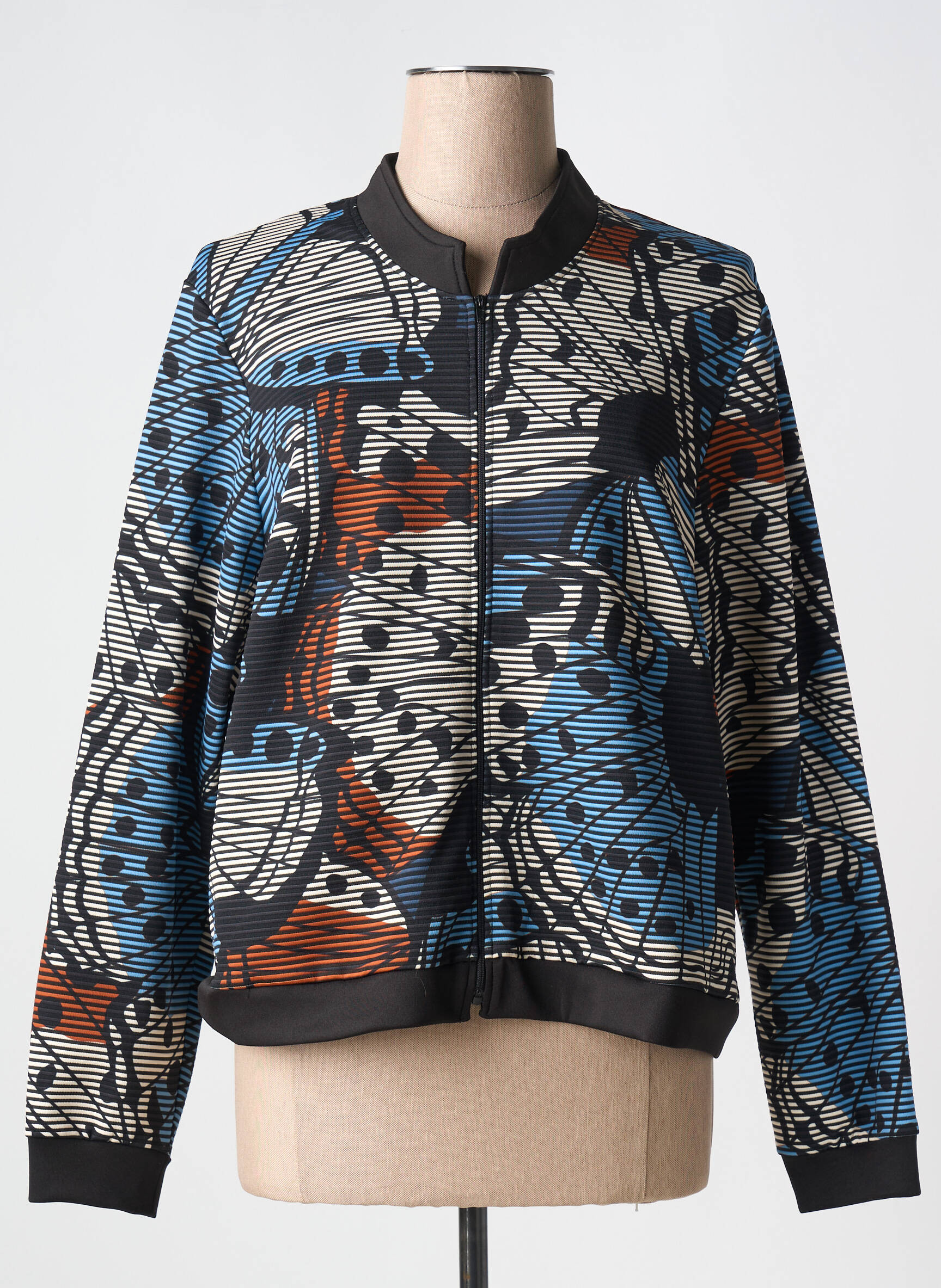 Saisissez l’occasion de vous offrir un look tendance à petit prix avec cette veste casual pour femme signée GUY DUBOUIS, mêlant originalité et élégance grâce à son imprimé graphique coloré qui attire tous les regards. Son design zippé à la coupe moderne et aux finitions soignées, sublimé par un motif dynamique aux nuances de bleu, orange et noir, vous assure un style unique au quotidien tout en réalisant de vraies économies sur une pièce mode incontournable.