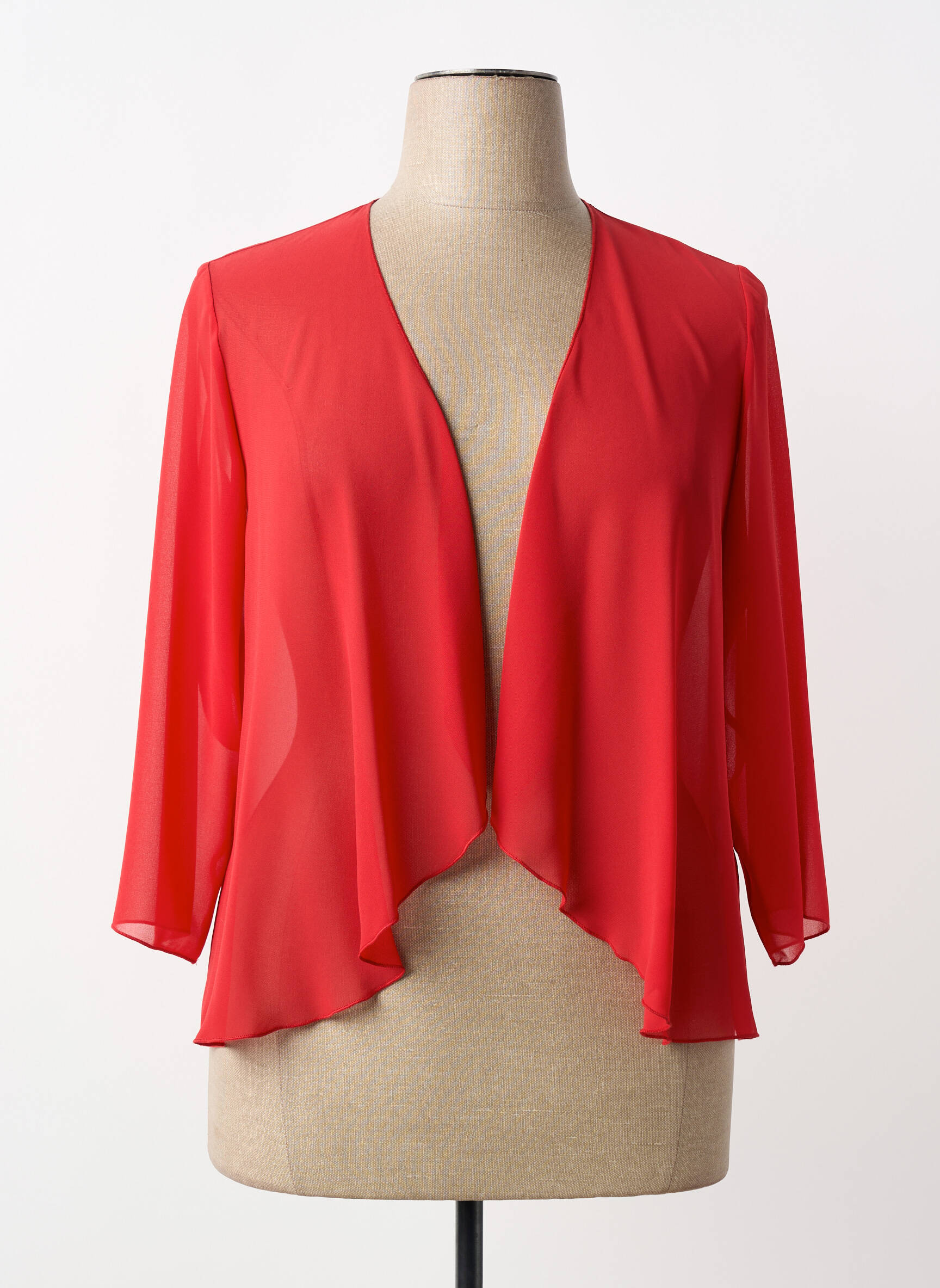 Profitez d’une occasion unique de vous offrir une veste casual de la marque GUY DUBOUIS à un prix exceptionnel, idéale pour donner du pep’s à vos tenues du quotidien. Sa coupe fluide et légère, soulignée par une ouverture sans fermeture et un tombé asymétrique, crée un effet élégant et moderne tout en restant facile à porter. Sa matière délicatement transparente et sa couleur vive apporteront une touche d’éclat à votre look, parfait pour se démarquer en toute simplicité et à petit prix.