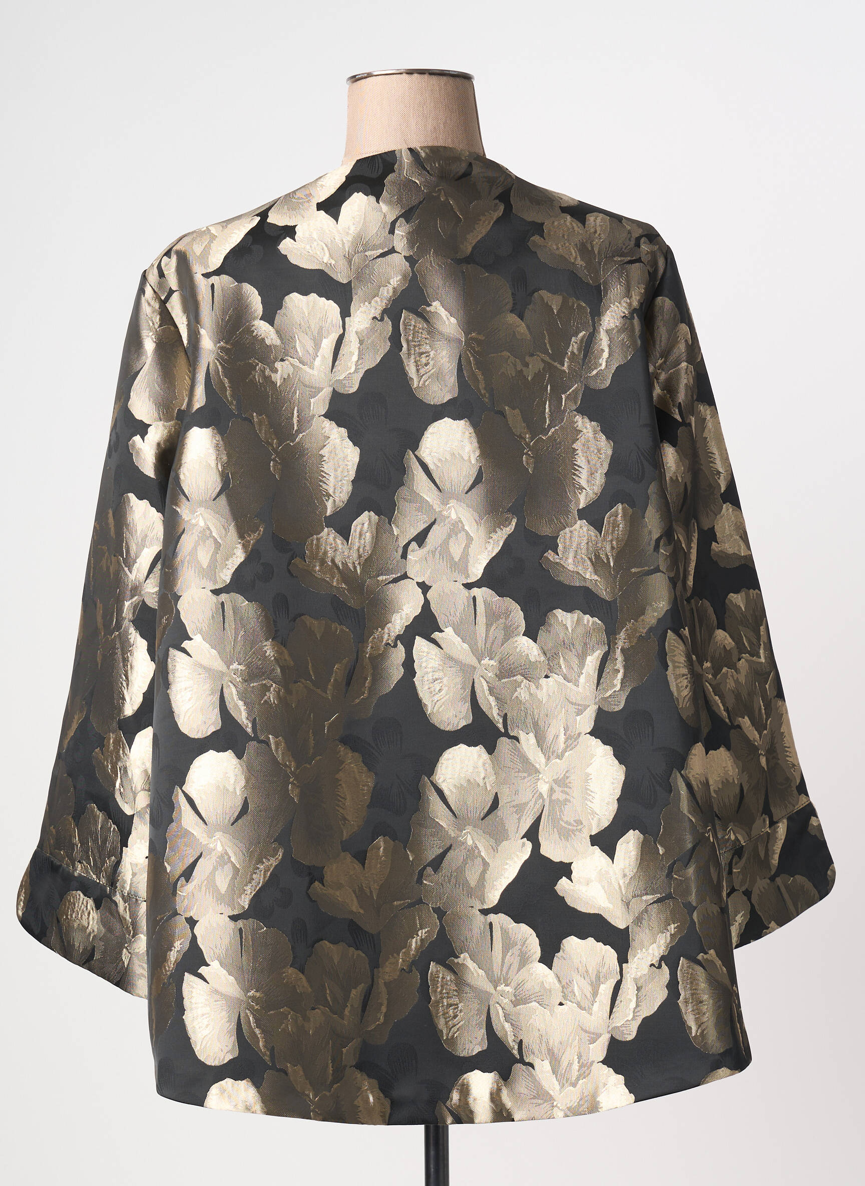 Cette veste peut facilement être portée sur un haut uni et ajusté, pour laisser toute sa place au motif floral et à la coupe élégante. Pour un look de soirée ou une occasion spéciale, elle se marie parfaitement avec un pantalon noir ou une jupe crayon. Si vous préférez une allure plus décontractée, n’hésitez pas à l’associer à un jean brut et des bottines sobres. Côté accessoires, optez pour des pièces discrètes qui mettront en valeur le raffinement de la veste sans surcharger l’ensemble, comme une pochette dorée ou des boucles d’oreilles minimalistes.