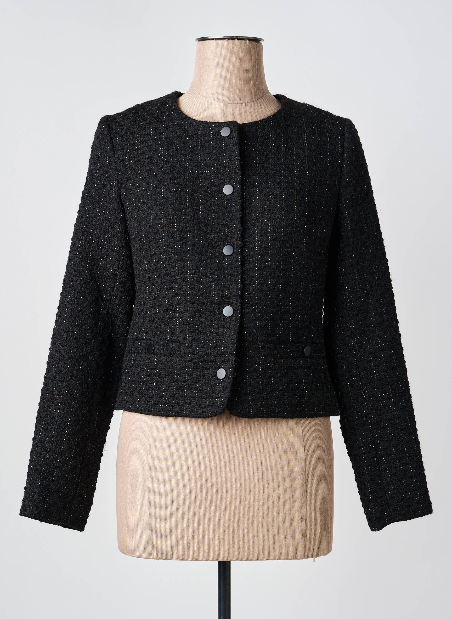 Voici l’occasion idéale de vous offrir une veste casual Julie Guerlande à prix mini, parfaite pour sublimer votre dressing sans vous ruiner. Son tissu texturé noir, ses boutons discrets et sa coupe droite apportent une touche chic et moderne à toutes vos tenues, pour un look élégant et facile à porter chaque jour. Faites-vous plaisir à moindre coût avec ce basique intemporel à saisir en destockage.