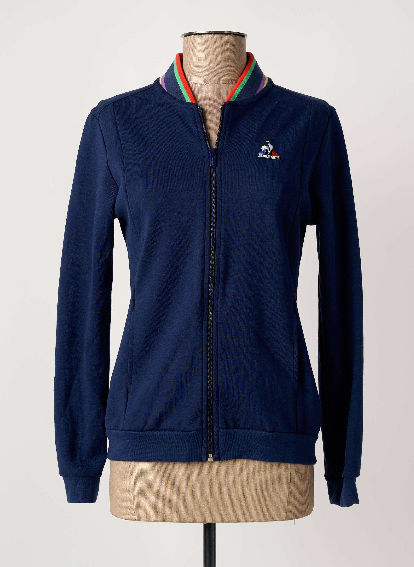 Craquez pour cette veste casual pour femme de la marque LE COQ SPORTIF, une pièce incontournable à prix mini pour un style sport chic au quotidien. Ce modèle arbore une couleur bleu marine élégante sublimée par un zip intégral pratique, une encolure côtelée décorée de fines bandes colorées et le logo emblématique brodé sur la poitrine. Profitez d’un bon plan mode et offrez-vous le look iconique de la marque sans vous ruiner.