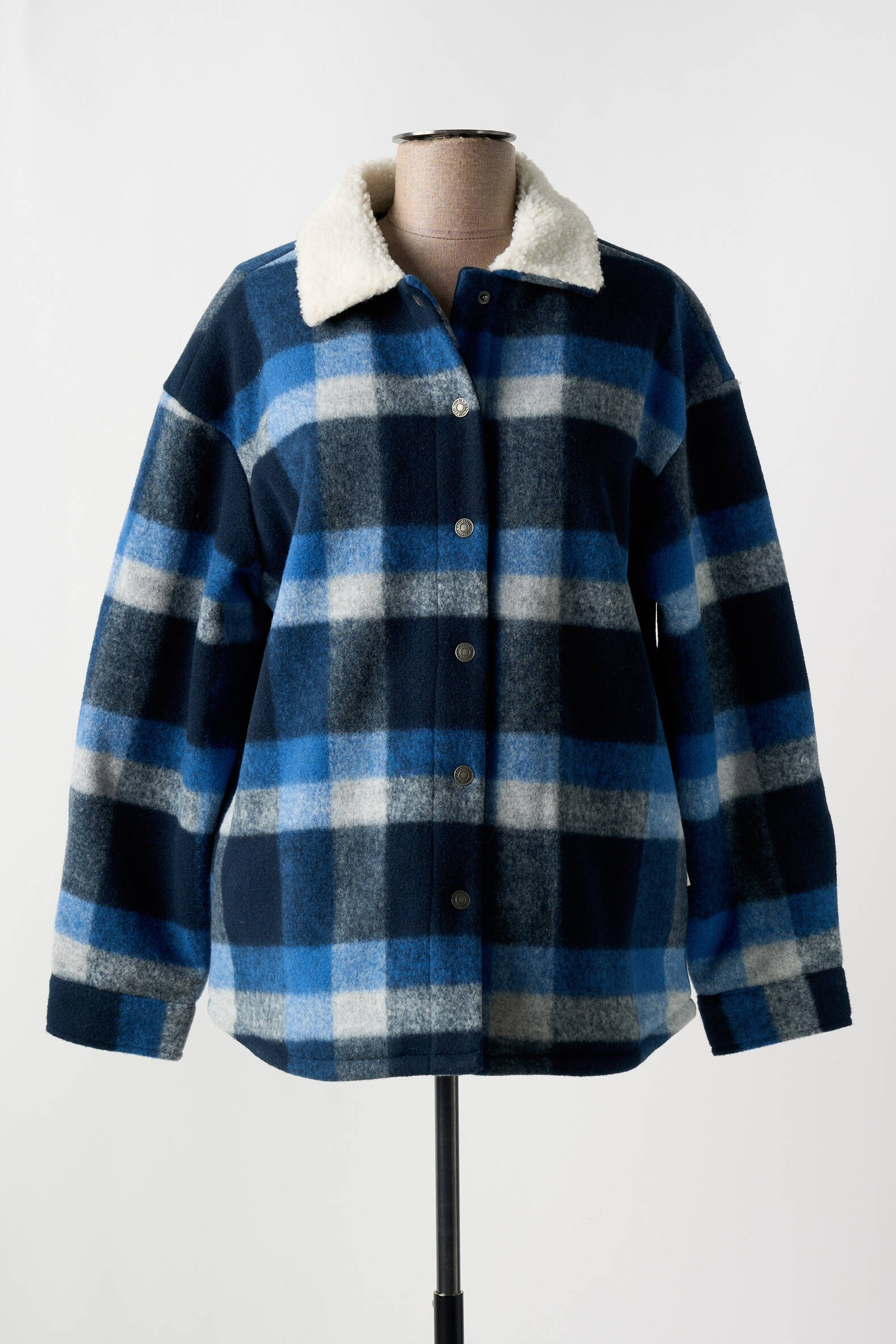 Imaginez-vous enveloppée dans un nuage de douceur stylée avec cette veste casual signée Lee Cooper, où un motif à carreaux bleus et gris s'étale généreusement sur une coupe légèrement oversize. Son col en sherpa écru apporte une touche de chaleur et de confort irrésistible, tandis que les boutons pression métalliques soulignent son côté pratique et décontracté. Parfaite pour ajouter une note cozy à vos tenues quotidiennes, cette pièce marie avec brio modernité et esprit authentique.