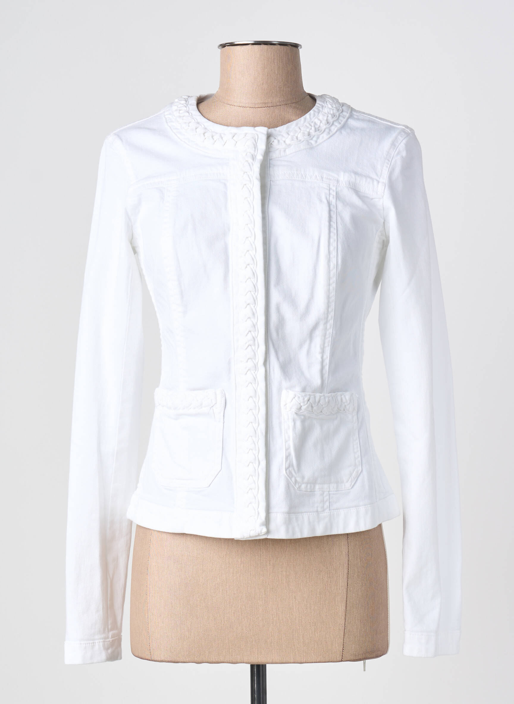 Craquez pour cette veste casual signée LIU JO, un incontournable à petit prix pour donner une touche raffinée à toutes vos tenues. Son élégante couleur blanche et sa coupe féminine sont mises en valeur par des détails tressés tout le long de l’encolure ronde et de la fermeture, tandis que les poches à l’avant ajoutent une note pratique et chic. Offrez-vous un look tendance sans vous ruiner grâce à cette pièce facile à assortir, idéale pour sublimer chaque instant de la journée.
