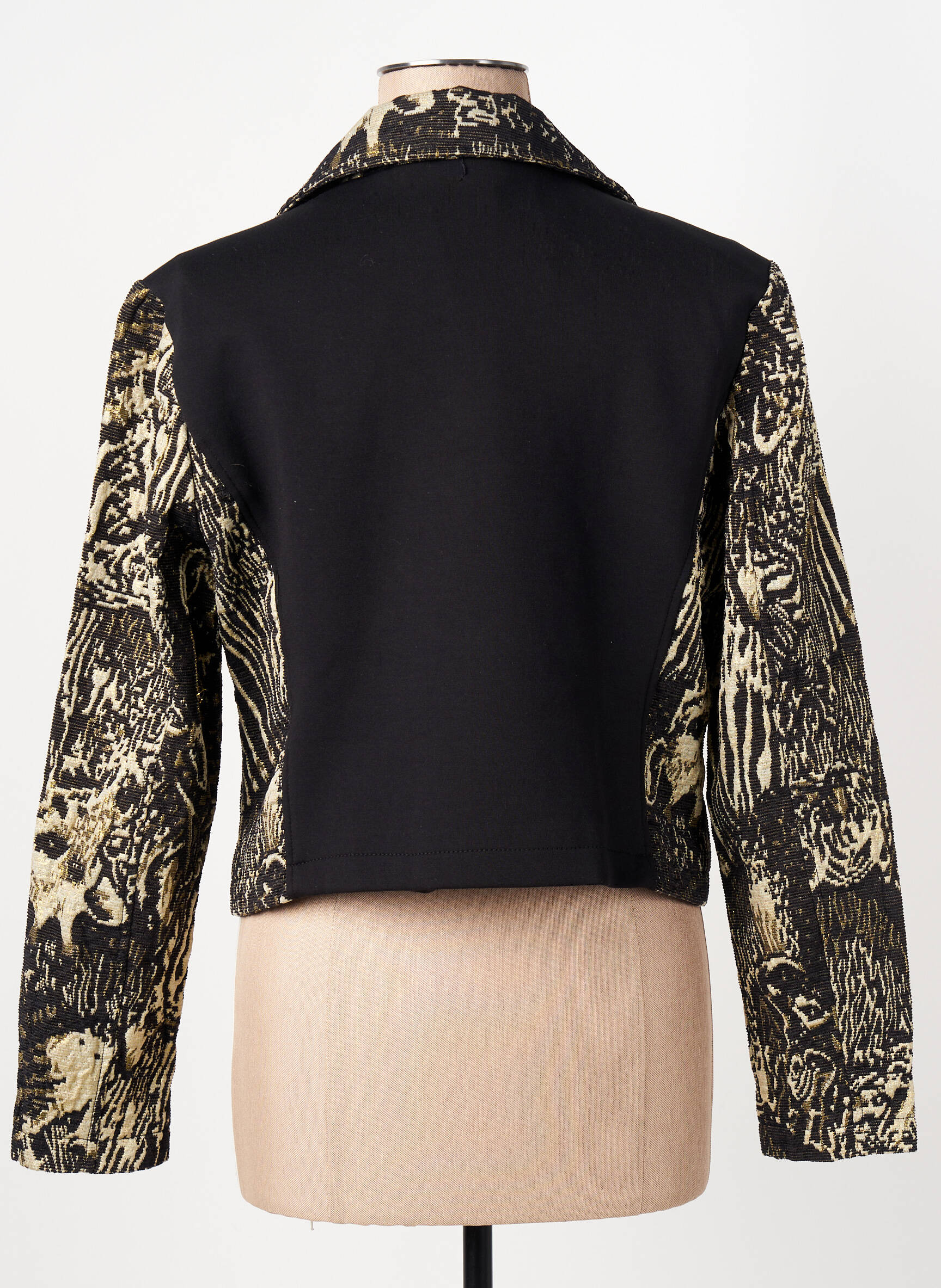 Pour un look citadin plein de caractère, il suffit de porter cette veste sur un jean brut et un simple t-shirt uni pour laisser parler ses motifs. Pour une allure plus sophistiquée, elle se marie parfaitement avec un pantalon noir ajusté et des bottines. Elle apporte aussi une touche d’originalité à une robe noire basique et relève instantanément une tenue sobre grâce à ses détails accrocheurs.