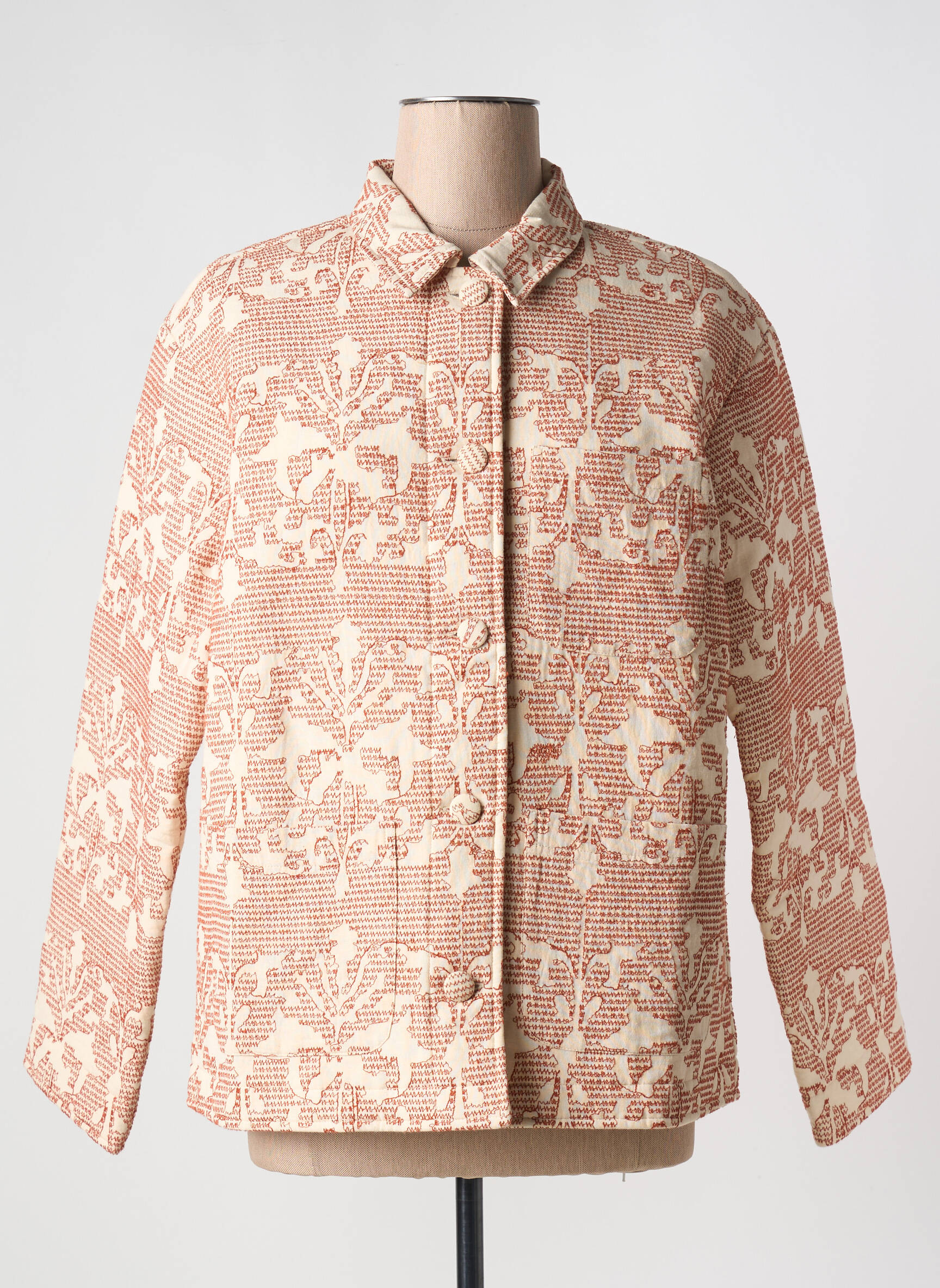 Offrez-vous une allure tendance à petit prix avec cette veste casual pour femme de la marque MAMOUCHKA, parfaite pour ajouter une touche d’originalité à vos tenues sans vous ruiner. Son motif floral délicat dans des tons écrus et brique lui apporte une note rétro chic, tandis que sa coupe droite et son col classique la rendent facile à porter au quotidien tout en affichant un style unique. Bénéficiez d'une pièce intemporelle issue de la boutique multimarque à prix doux, idéale pour rehausser votre garde-robe sans compromis sur le style ou le budget.