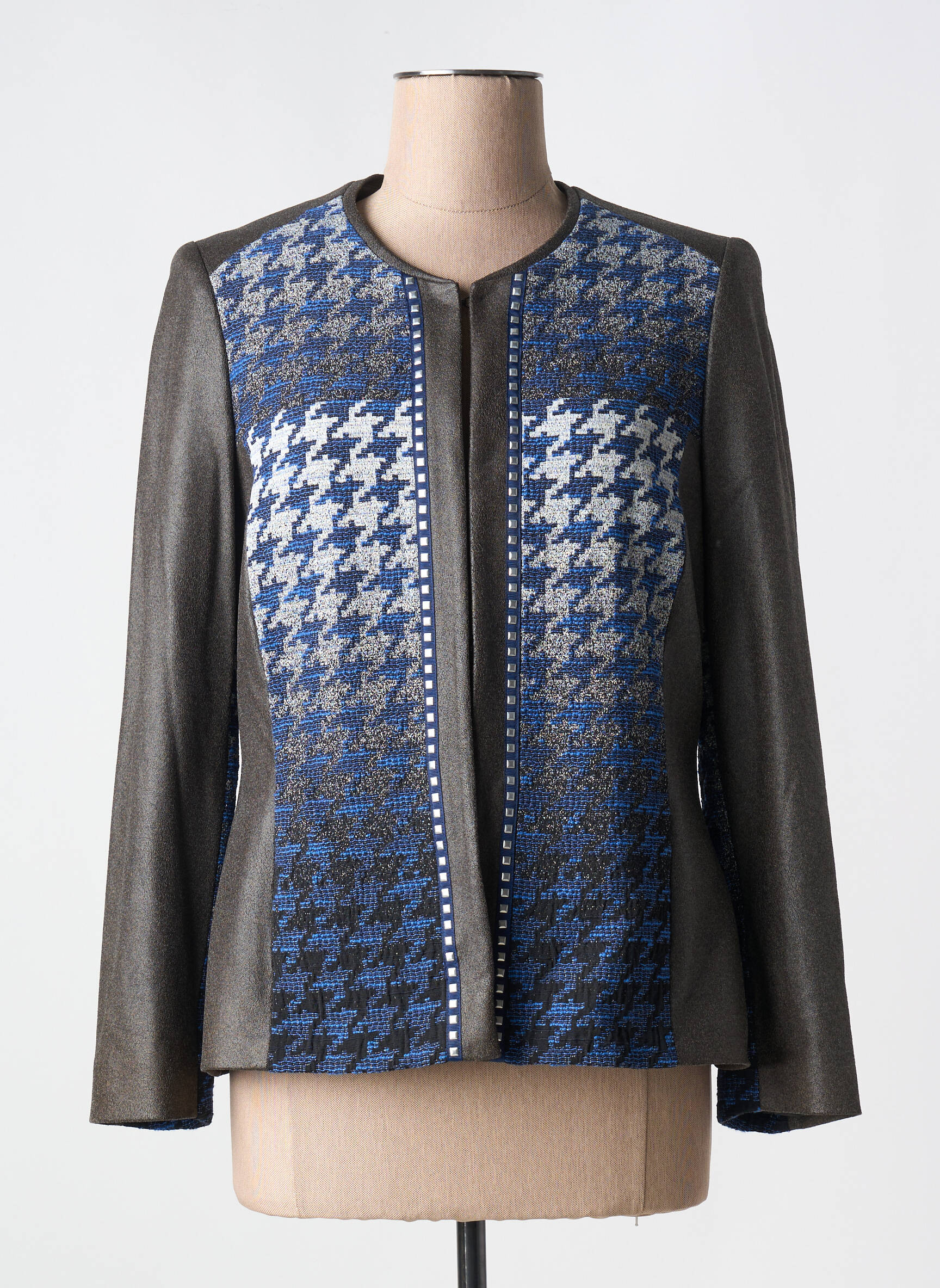 Craquez pour cette veste casual MERI & ESCA pour femme qui allie élégance et originalité à petit prix, avec son motif pied-de-poule revisité aux nuances de bleu et gris rehaussé d’un liseré à motif sur le devant, le tout contrasté par des manches et des côtés d’un ton uni sophistiqué ; une pièce chic et tendance à saisir sans hésiter pour un look raffiné sans se ruiner.