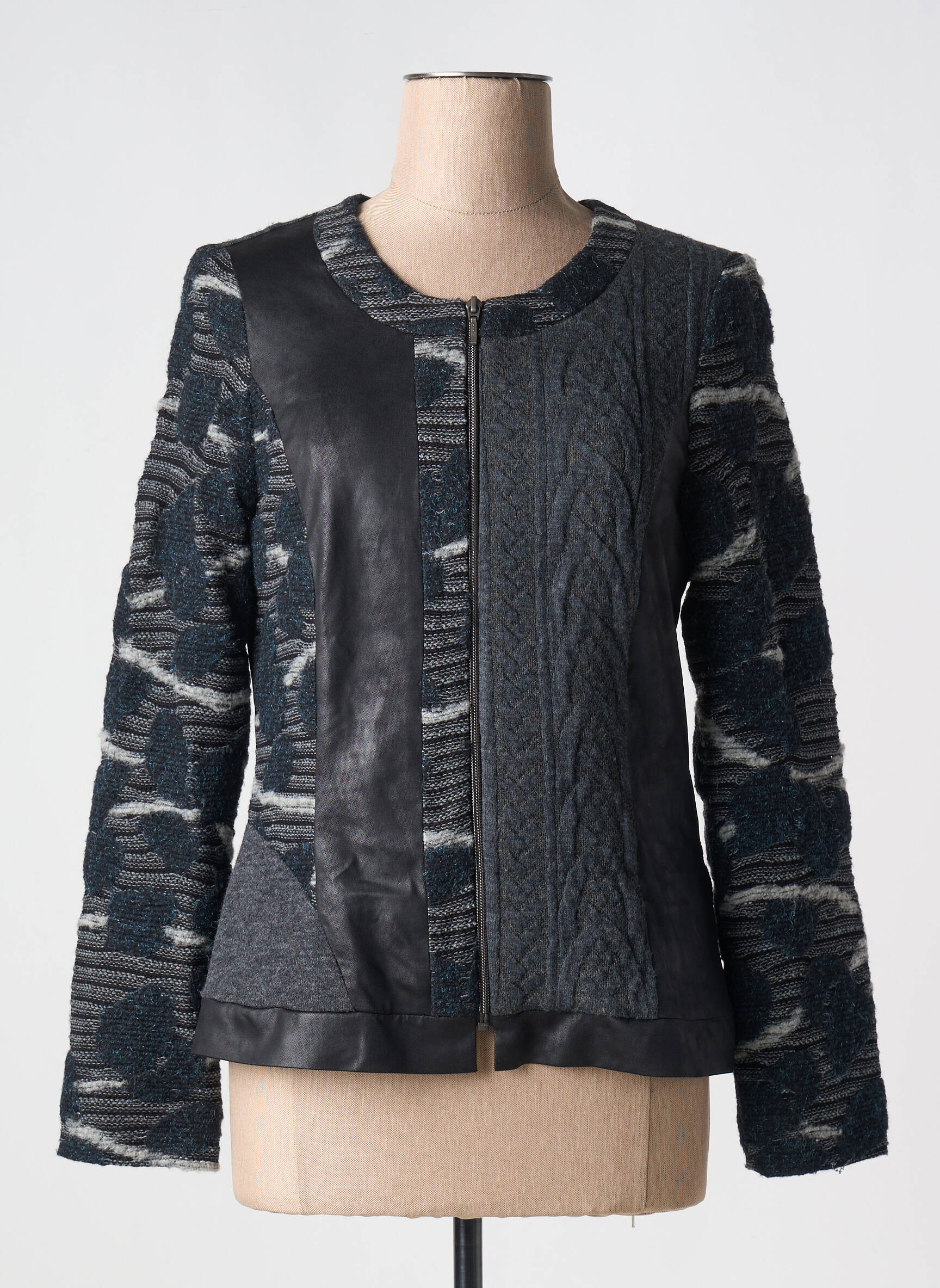 Profitez d'une opportunité unique pour donner du style à votre garde-robe avec cette veste casual pour femme signée MERI & ESCA, un vrai bon plan à petit prix. Ce modèle original mise sur un mariage réussi de textures, alternant habilement les empiècements effet cuir et les parties texturées façon maille, pour un rendu graphique et moderne. À la fois chic et décontractée, cette veste zippée offre une allure résolument tendance tout en restant confortable, parfaite pour valoriser vos looks du quotidien sans vous ruiner.
