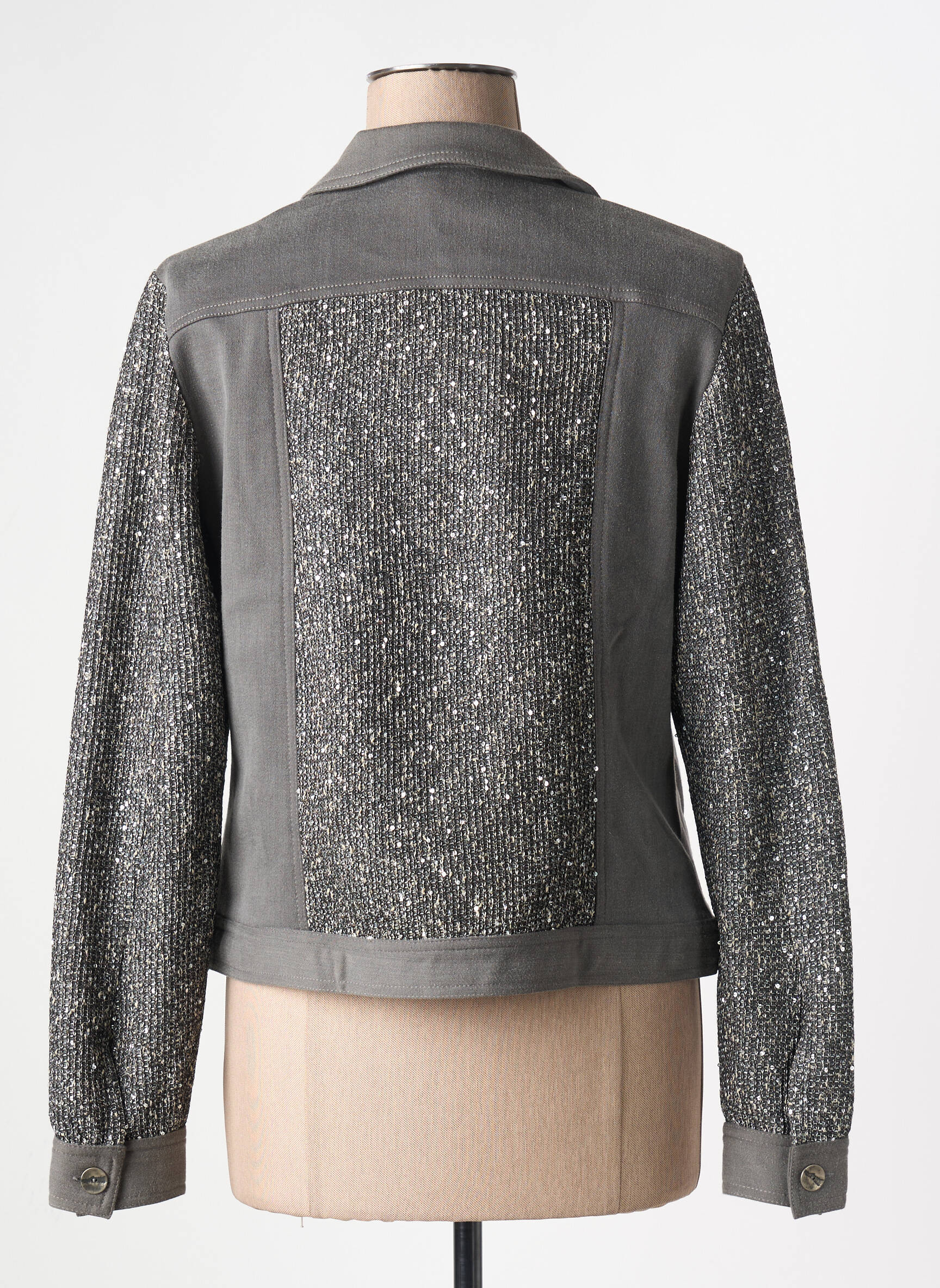 Profitez d'une occasion exceptionnelle avec cette veste casual pour femme signée MERI & ESCA, qui associe une coupe classique à des détails scintillants ultra tendance pour un look moderne à prix mini. Ce modèle met en valeur un jeu de textures entre un tissu gris sobre et des empiècements brillants sur les manches et le devant, parfait pour illuminer vos tenues sans vous ruiner. Adoptez-la pour dynamiser votre dressing tout en réalisant de vraies économies, sans compromis sur le style !