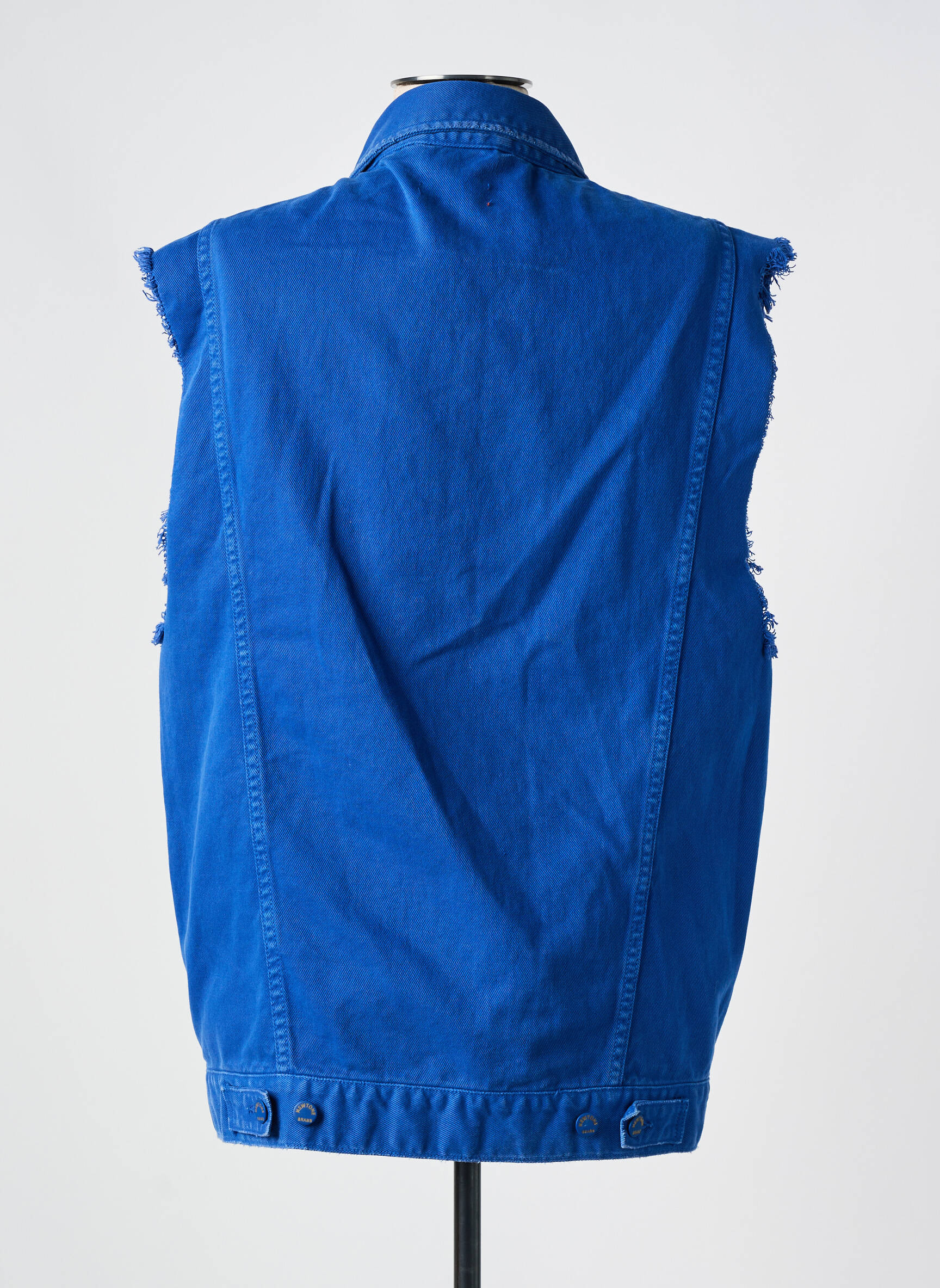 Imaginez une veste qui mêle audace et décontraction avec une touche de singularité : cette veste casual de la marque NEWTONE pour femme se distingue par sa teinte bleu vif qui capte le regard instantanément. Son design sans manches, agrémenté de bords volontairement effilochés, lui confère un esprit rebelle et moderne, tandis que les poches poitrine à rabat ajoutent une note fonctionnelle et esthétique. Les boutons métalliques sur le devant apportent un contraste subtil tout en soulignant la coupe droite et légèrement longue de cette pièce unique, parfaite pour rehausser une tenue décontractée avec une dose d'originalité.
