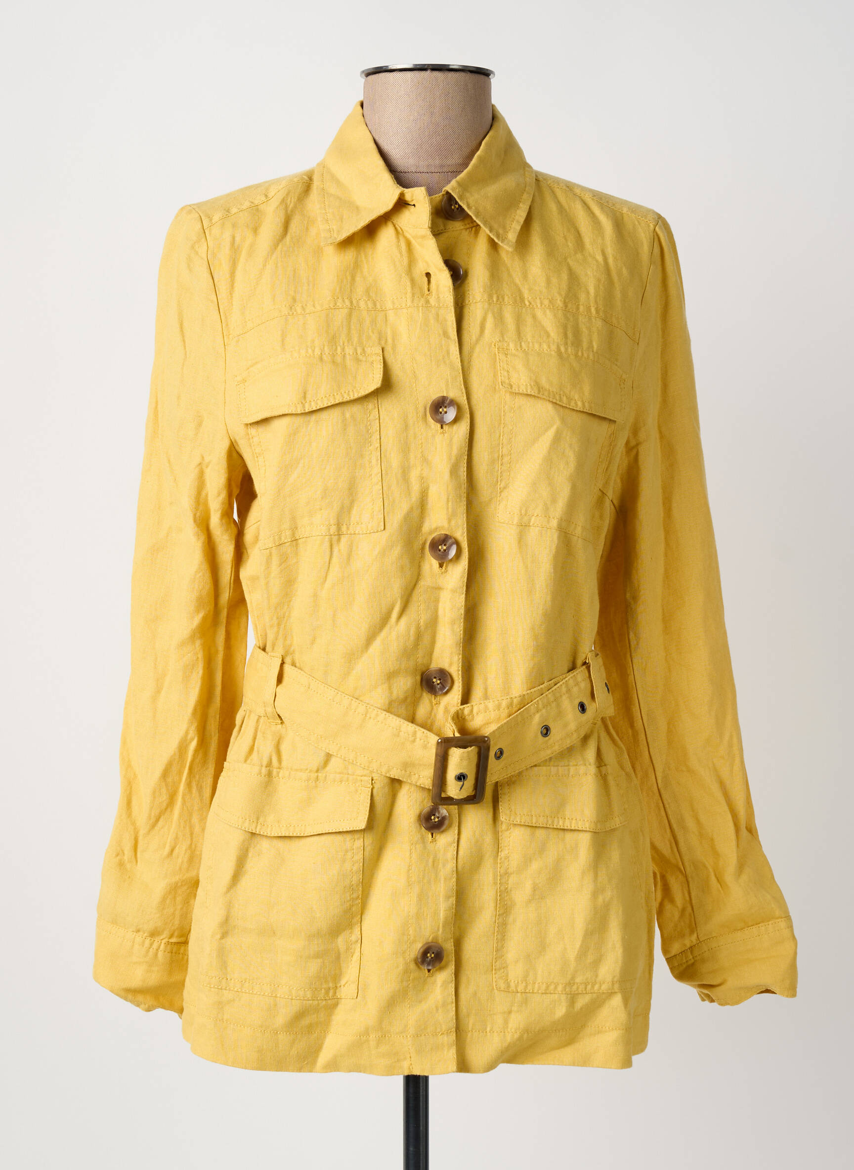 Profitez d’un look tendance à petit prix avec cette veste casual pour femme de la marque OLSEN, un modèle lumineux qui dynamise votre silhouette grâce à sa belle couleur jaune et sa ceinture à boucle assortie. Pratique avec ses grandes poches et élégante avec ses boutons contrastés, elle offre un style décontracté parfait pour renouveler votre dressing sans vous ruiner.