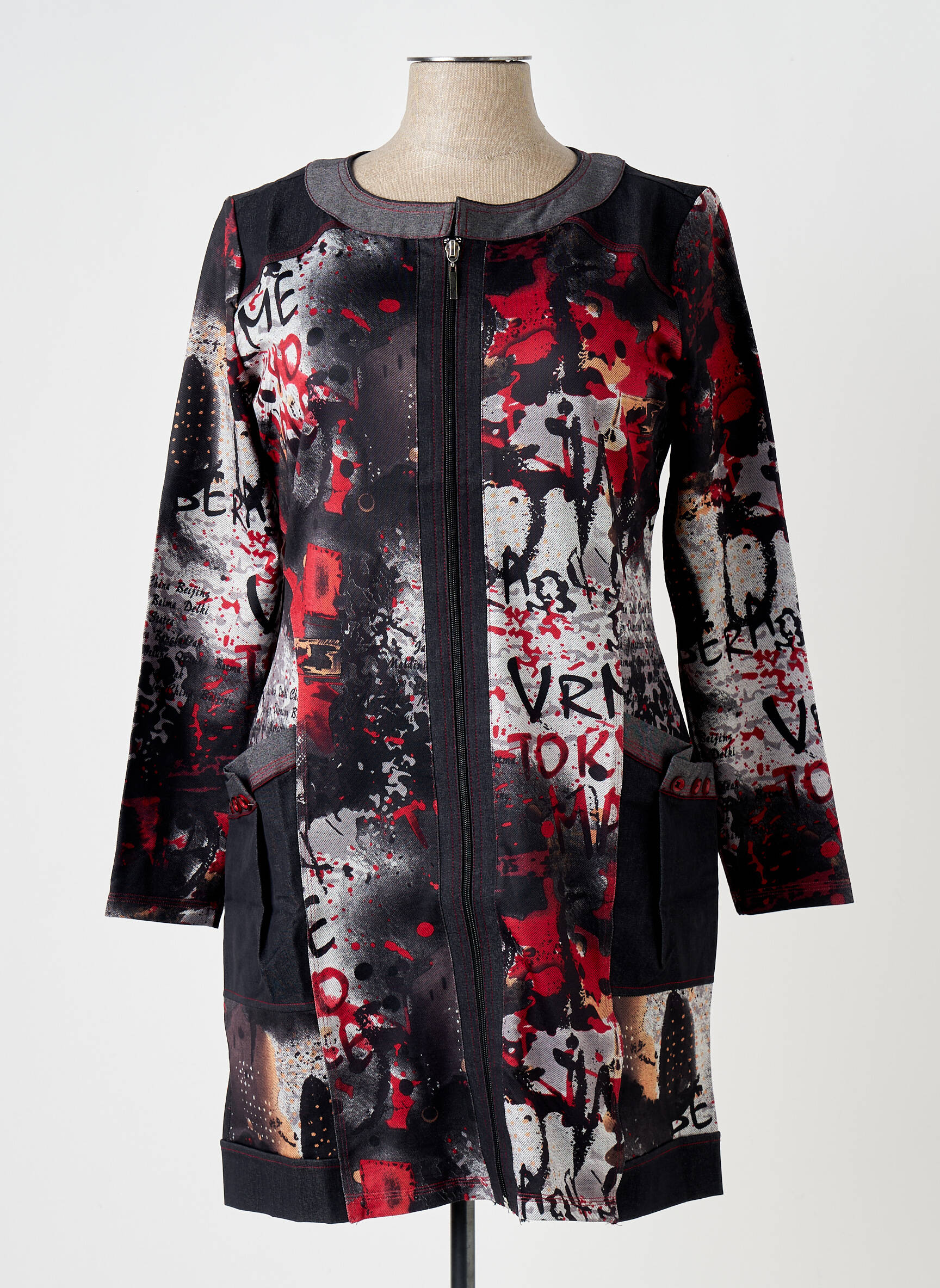 Profitez d’un véritable bon plan avec cette veste casual pour femme de la marque QUATRE VINGT JOURS, idéale pour celles qui souhaitent ajouter une touche urbaine à leur garde-robe sans se ruiner. Avec son imprimé graphique audacieux mêlant des touches de rouge, de noir et de blanc, elle attire tous les regards tout en restant facile à porter au quotidien. Sa coupe légèrement cintrée met en valeur la silhouette et sa fermeture zippée pratique en fait un allié aussi tendance que fonctionnel. À petit prix, cette pièce offre un style original et contemporain, parfaite pour dynamiser vos looks en toute simplicité.