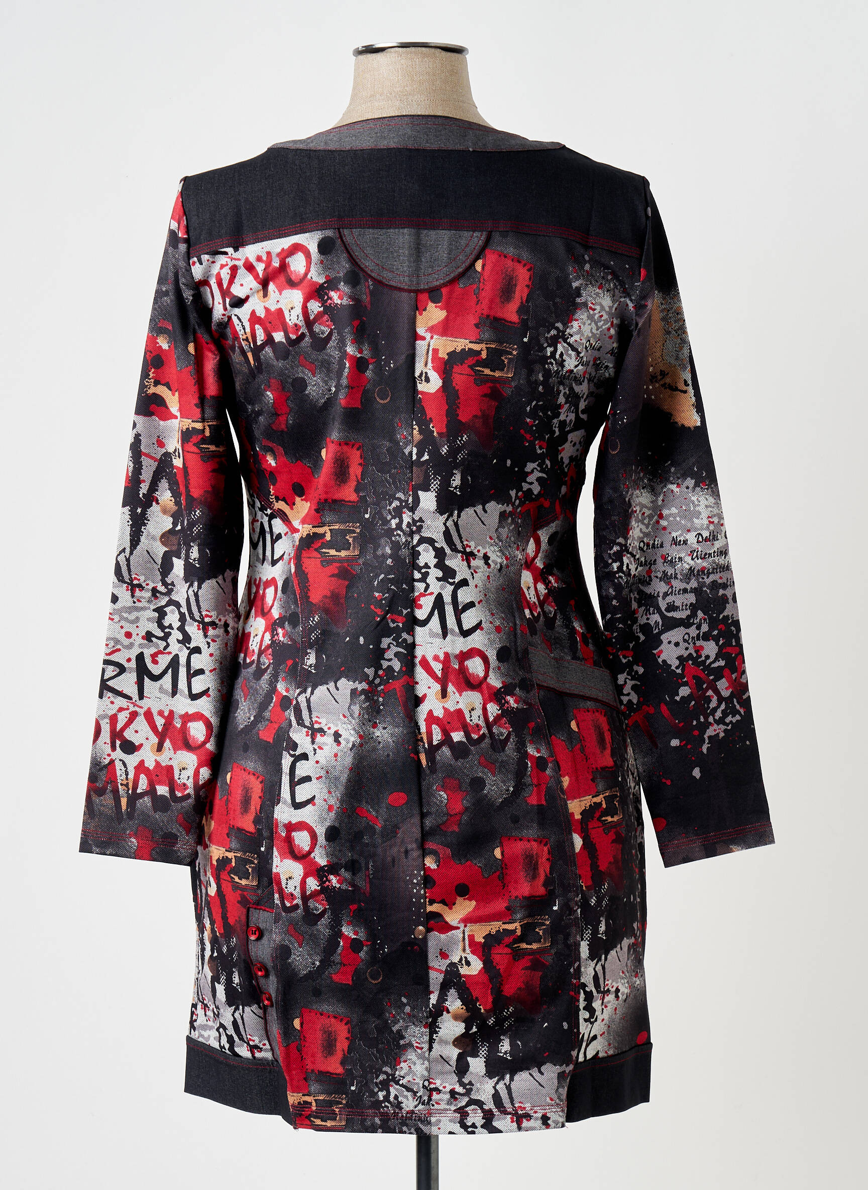 Cette veste casual apporte instantanément du caractère à une tenue simple, il suffit de l’enfiler sur un jean brut et un t-shirt uni pour un look décontracté mais travaillé. Pour une allure plus sophistiquée, on peut l’associer à une petite robe noire et des bottines, ou la twister avec un pantalon slim et des baskets blanches pour une touche urbaine. Son style graphique se marie parfaitement avec des accessoires sobres, comme un sac noir ou une écharpe grise, afin de garder toute l’attention sur la pièce maîtresse de la tenue.