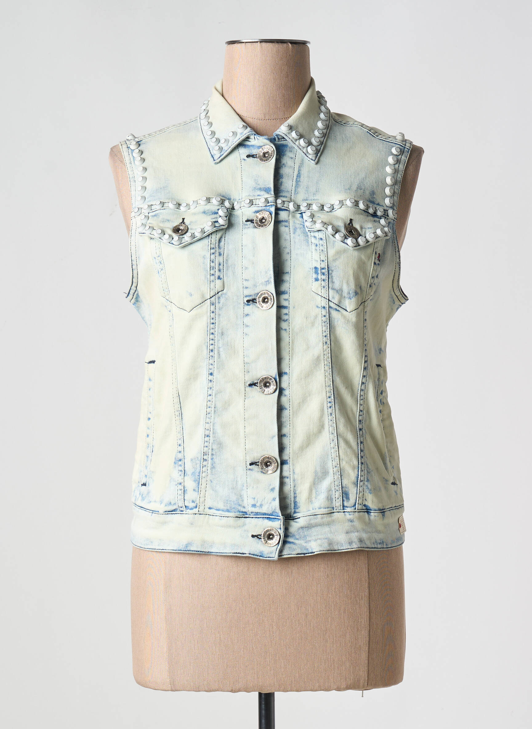 Craquez pour ce gilet en jean sans manches REPLAY pour femme, un incontournable à prix mini pour compléter votre dressing avec une touche rock et tendance. Sa coupe droite façon veste classique associée à un délavage clair et à des détails cloutés sur les épaules et la poitrine lui donne un style affirmé, idéal pour dynamiser vos looks sans vous ruiner. Profitez de cette belle opportunité pour adopter un style casual chic et faire de vraies économies sur une pièce emblématique de la mode urbaine.
