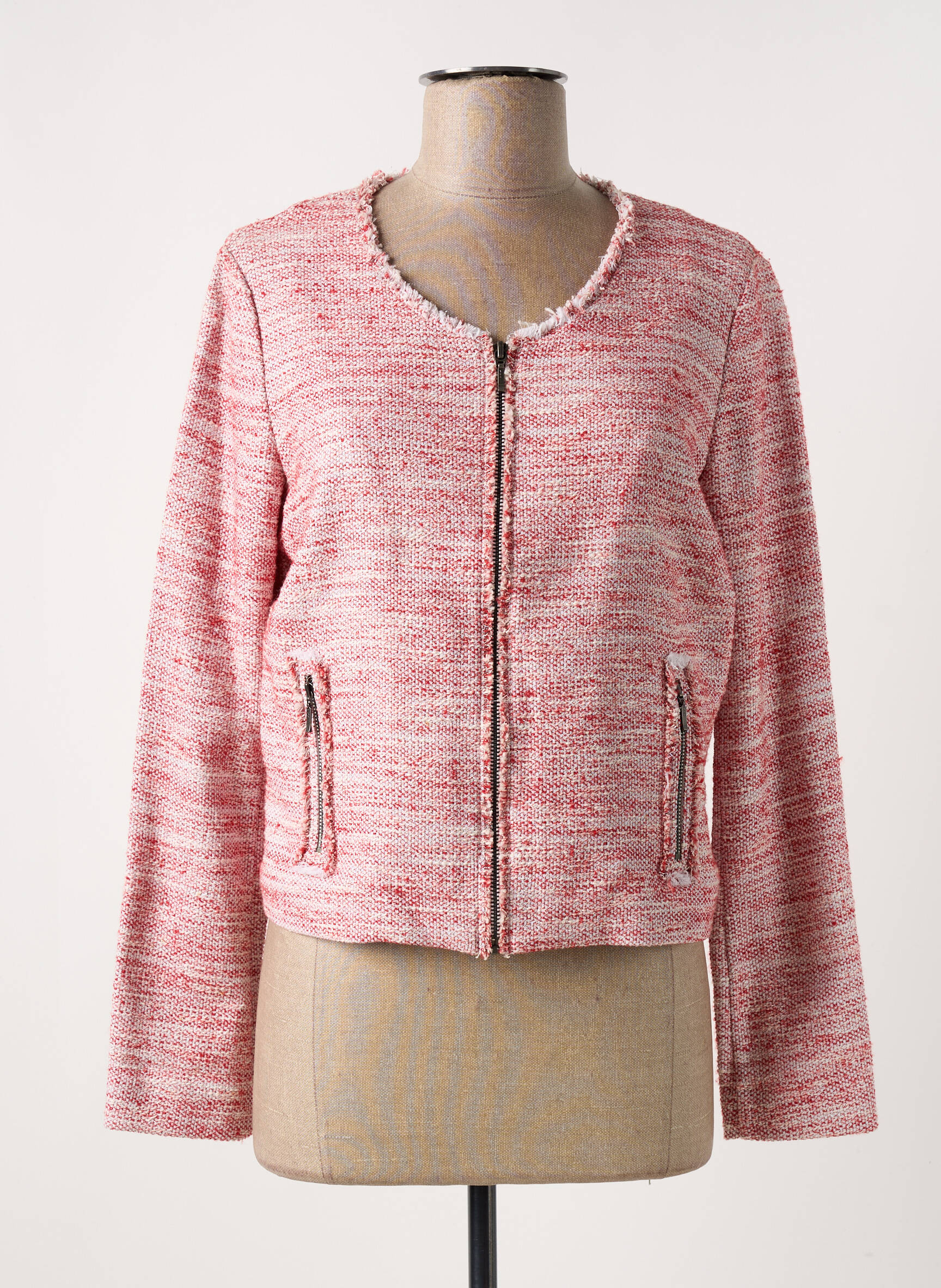 Craquez pour cette veste chic de la marque FLEUR DE SEL, un véritable bon plan pour donner une touche élégante et moderne à votre garde-robe sans vous ruiner. Avec son tissu effet tweed dans les tons roses et blancs, ses poches zippées raffinées et sa coupe droite intemporelle, elle devient un allié de choix pour toutes vos occasions à prix doux. Profitez de cette opportunité unique pour vous offrir un look sophistiqué à petit prix !