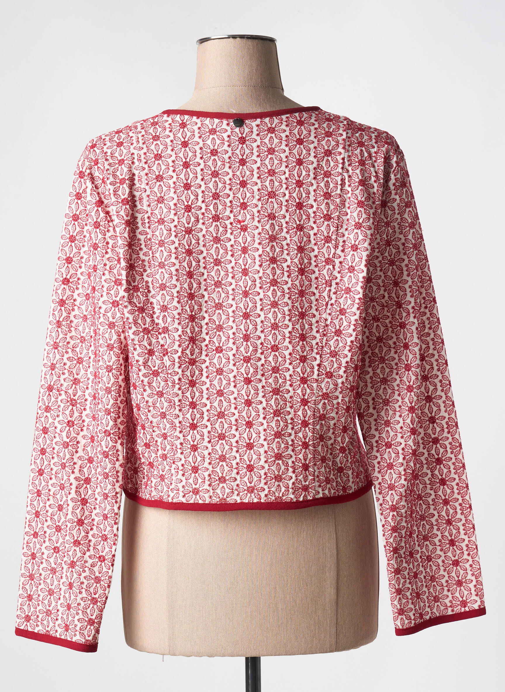 Profitez d’une opportunité à ne pas manquer avec cette veste chic de la marque NATHALIE CHAIZE, proposée à un prix exceptionnel. Son tissu à motifs rouges et blancs apporte une touche sophistiquée à votre tenue, tandis que la coupe courte et le col rond soulignent une allure féminine et contemporaine. La fermeture par zip décorée d’un petit lien ajoute une note moderne, idéale pour dynamiser un look de ville ou compléter une tenue plus habillée sans se ruiner.