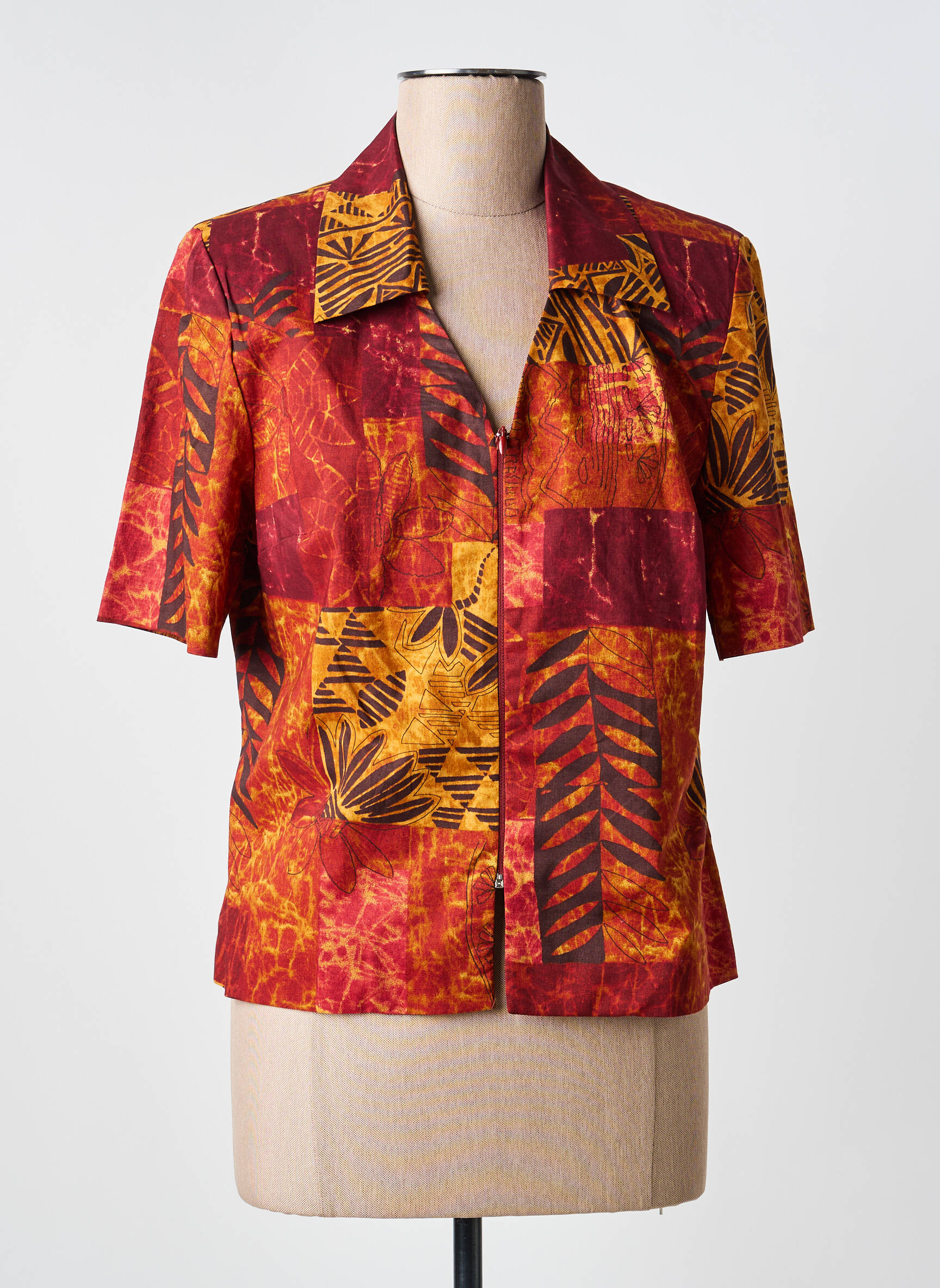 Voici un vrai bon plan pour sublimer votre garde-robe sans vous ruiner : cette veste chic PIER BÉ pour femme, à l’imprimé patchwork coloré mêlant des teintes rouges et jaunes rehaussées de motifs feuillage stylisés, offre une touche d’originalité instantanée à toutes vos tenues. Sa coupe légère à manches courtes et son col classique en font un choix parfait pour une allure élégante au quotidien ou lors de vos soirées, le tout à prix craqué !