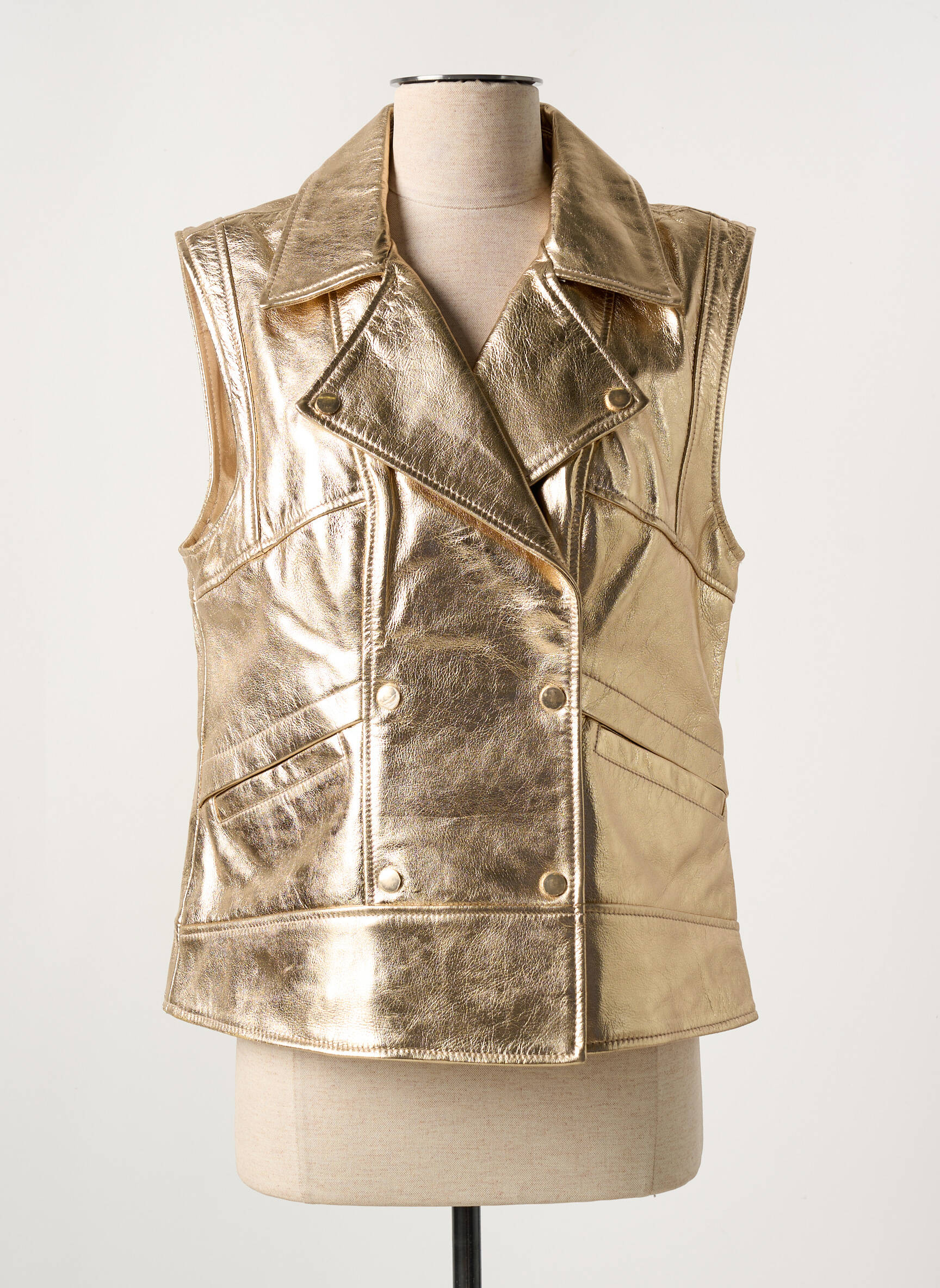 Saisissez l’opportunité de vous offrir cette veste en cuir doré signée PAUL AJAMIAN à prix mini, un vrai coup de cœur pour celles qui veulent illuminer leur silhouette sans se ruiner. Avec sa coupe sans manches et ses détails façon perfecto, elle apporte une touche audacieuse et contemporaine à toutes vos tenues, pour un look unique et tendance sans compromis sur votre budget.