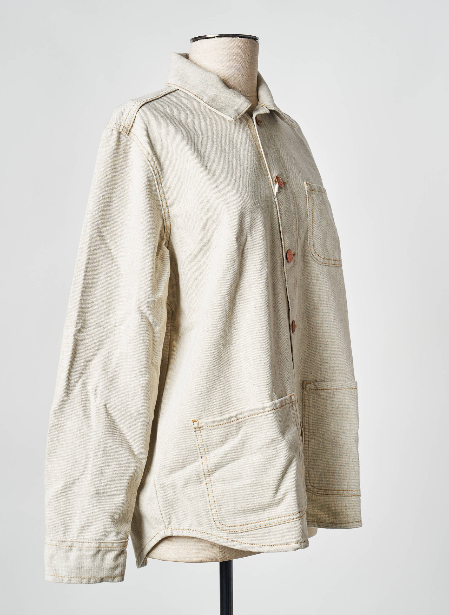 Cette veste claire se porte facilement sur un t-shirt coloré ou une chemise à motifs pour un look casual-chic, et s’accorde tout aussi bien avec un pantalon fluide ou un jean brut pour jouer sur les contrastes de matières. Pour une allure plus citadine, glissez-la sur une robe longue imprimée et associez le tout à une paire de baskets blanches ou des bottines, et vous obtenez une silhouette tendance sans effort.