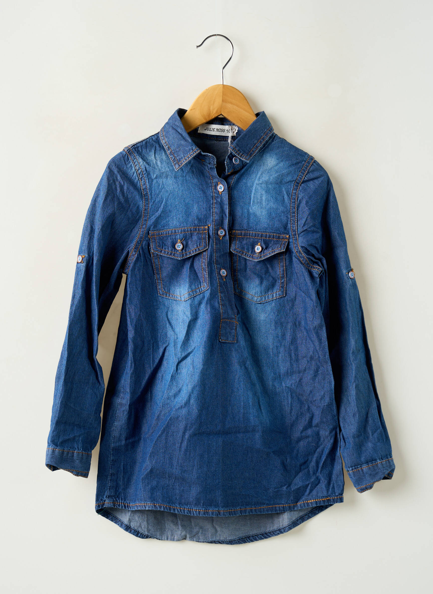 Offrez à votre fille un look tendance à tout petit prix avec cette blouse JOLIE MISS en denim, idéale pour un style décontracté et moderne. Son design soigné avec son col chemise, ses poches à rabat sur la poitrine et ses manches ajustables en fait un basique pratique et stylé, parfait pour toutes les occasions du quotidien sans vous ruiner. Profitez de ce bon plan pour ajouter une pièce intemporelle à sa garde-robe, à prix mini.