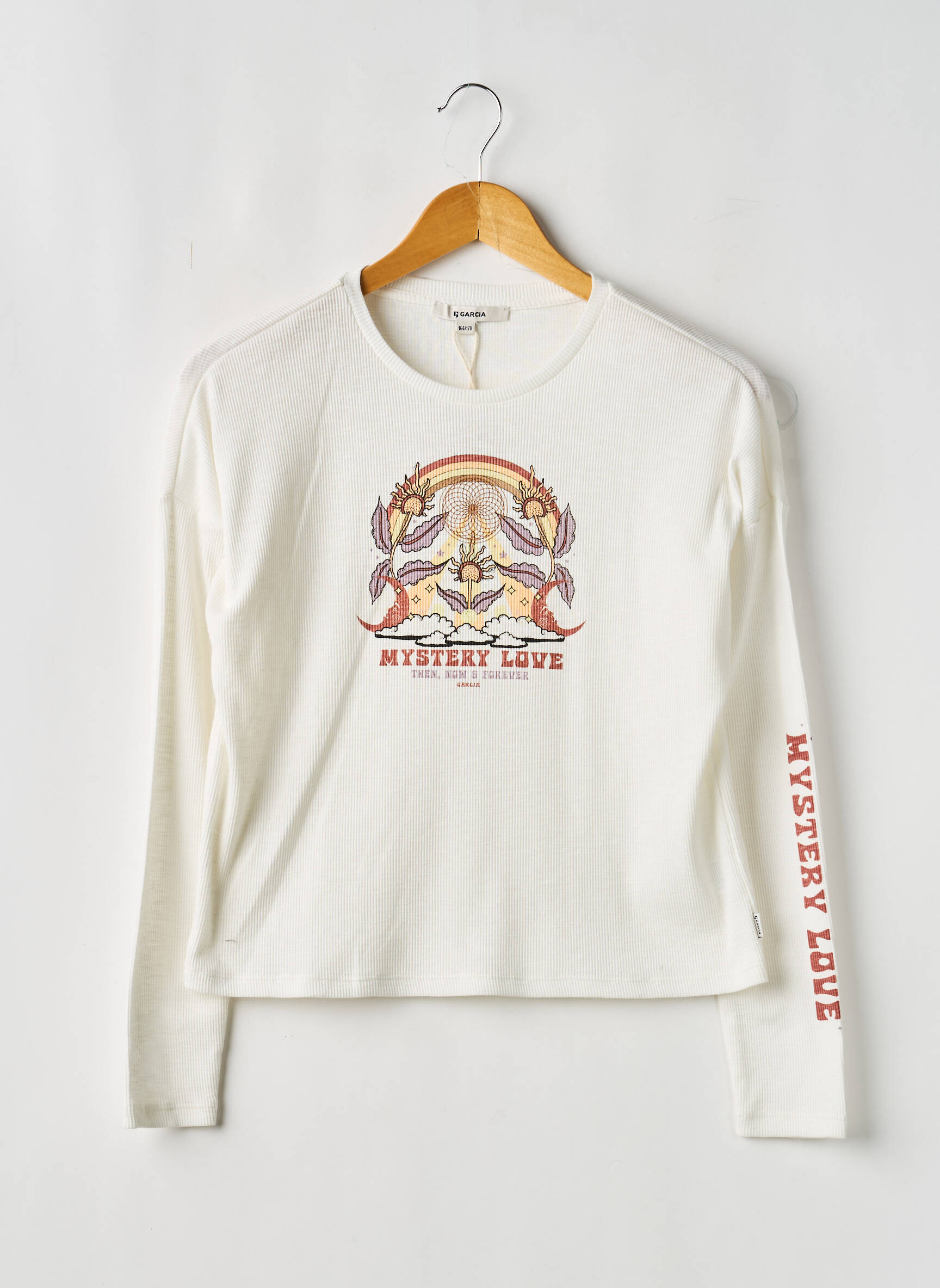 Profitez d’un excellent rapport qualité-prix avec ce top GARCIA pour fille, idéal pour apporter une touche de style tendance à petit prix. Ce modèle à manches longues séduit par sa couleur écrue facile à assortir, son motif imprimé sur le devant qui rappelle l’univers du tatouage, ainsi que l’inscription "Mystery Love" à la fois originale et pleine de caractère, présente sur la poitrine et le long d’une manche. C’est la pièce parfaite pour dynamiser toutes les tenues sans se ruiner.