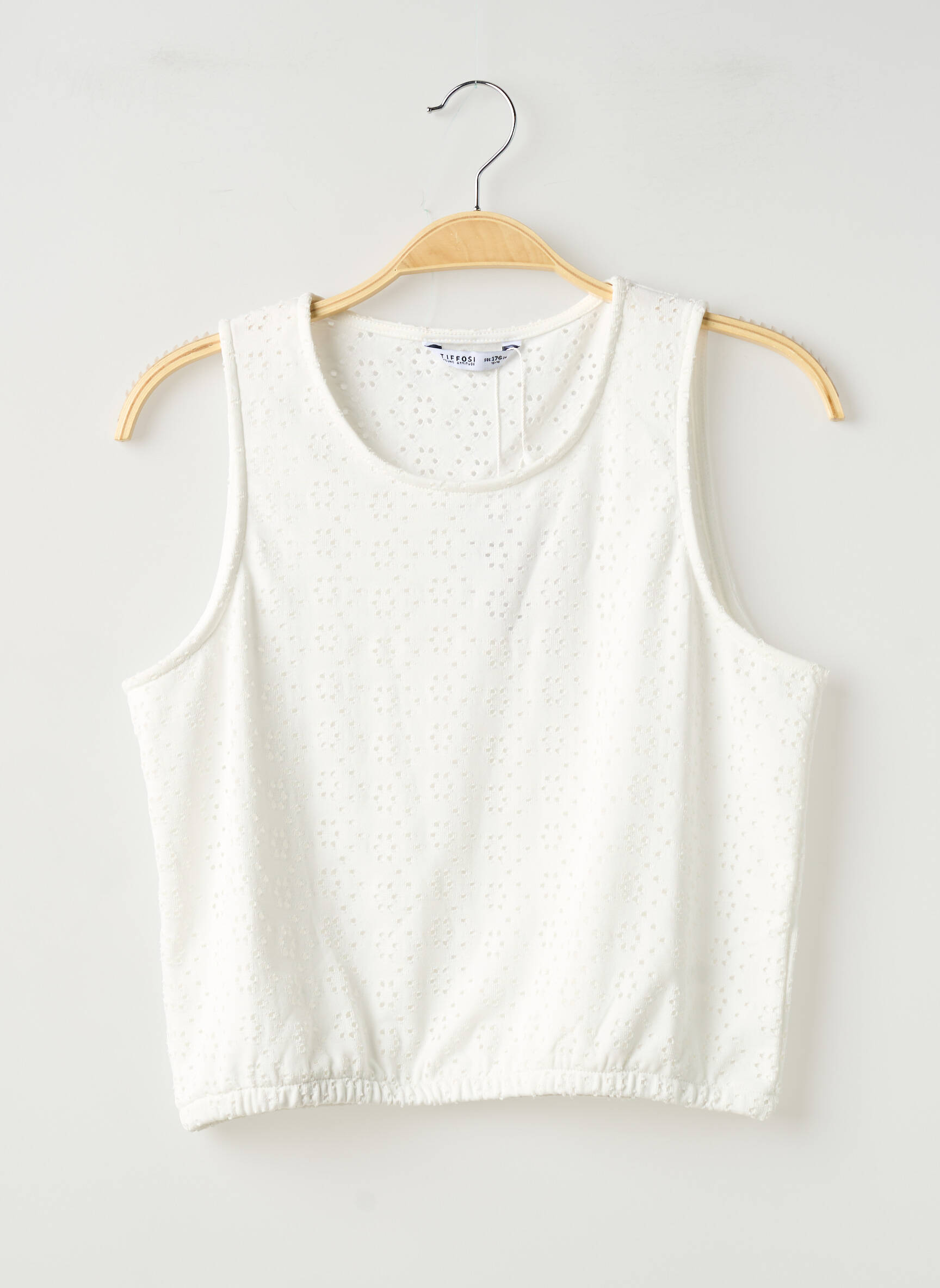 Pour un look estival tendance à petit prix, ce top fille de la marque TIFFOSI est l'occasion parfaite de faire une belle économie sans sacrifier le style. Sa coupe sans manches et légèrement raccourcie apporte une touche moderne, tandis que le tissu blanc délicatement ajouré donne au vêtement un aspect frais et lumineux, idéal pour les beaux jours. C’est le coup de cœur à saisir pour compléter la garde-robe des filles sans dépenser trop.