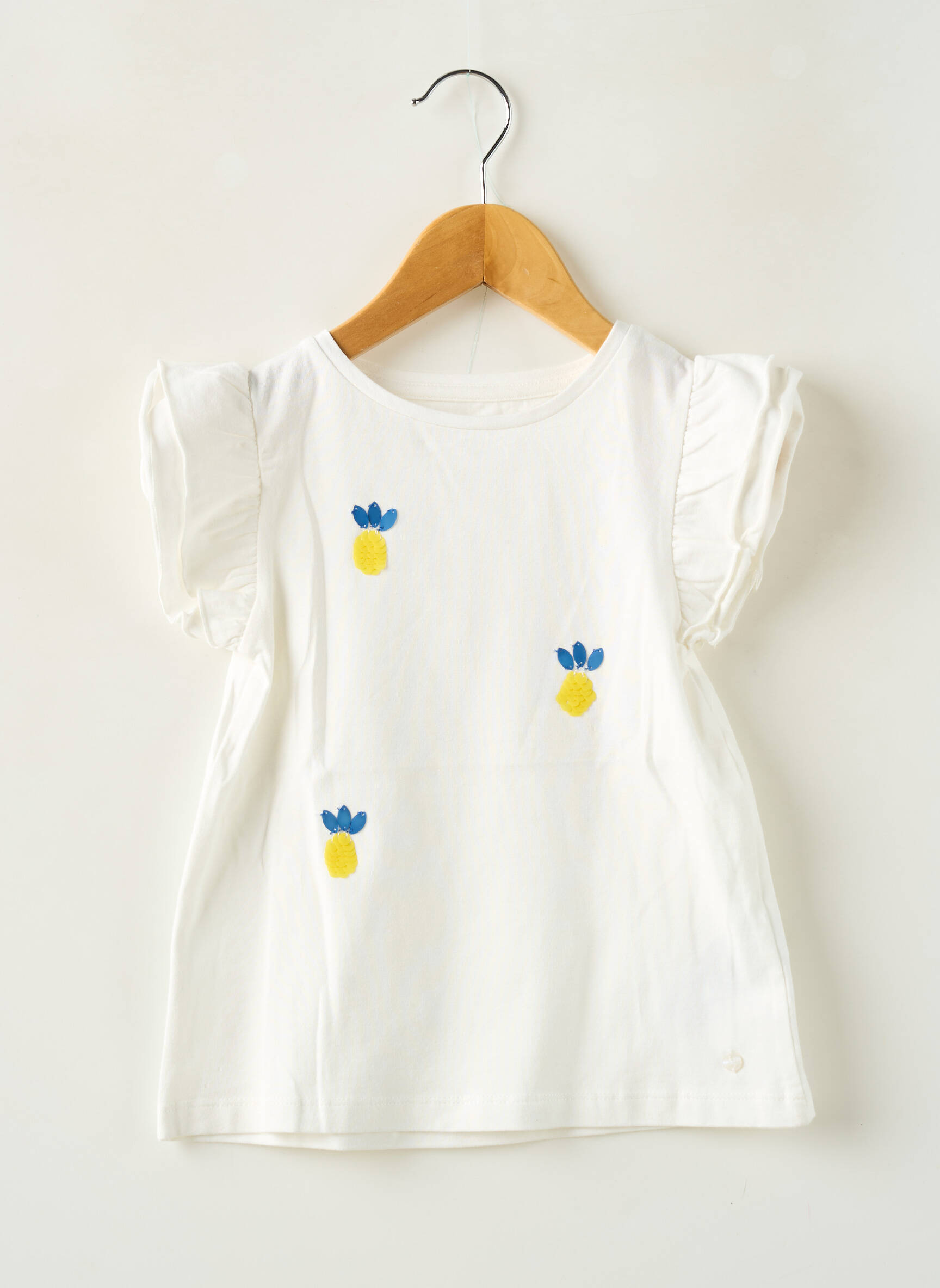 Craquez pour ce joli top ZY pour fille, une véritable pépite à petit prix qui apportera une touche de fraîcheur et de fantaisie à la garde-robe de votre enfant. Son tissu clair rehaussé de motifs ananas brodés et ses manches volantées font de ce modèle un choix tendance, idéal pour toutes les occasions et parfait pour profiter d’une bonne affaire sans compromis sur le style.