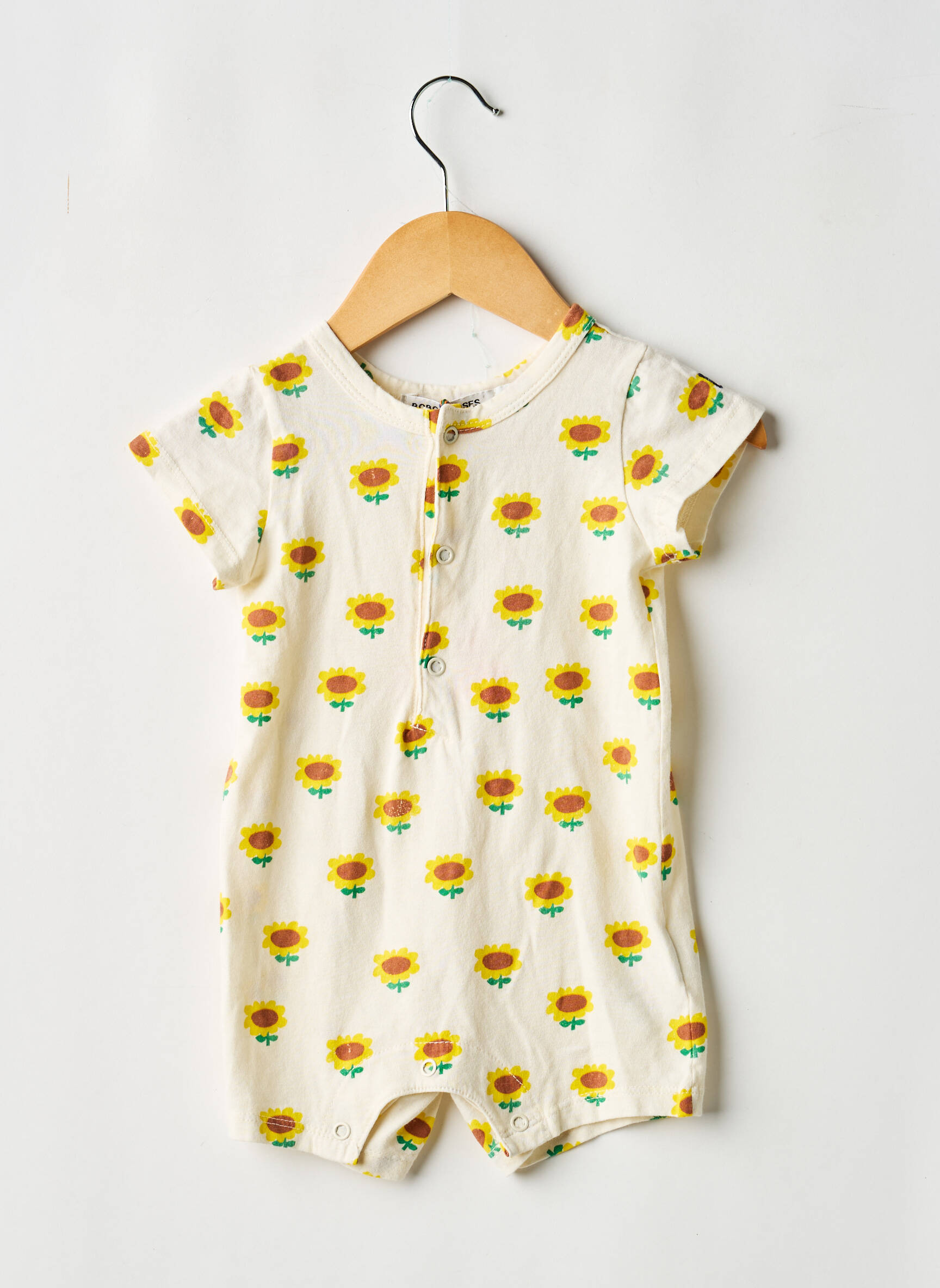 Craquez pour ce combishort BOBO CHOSES pour fille, un indispensable à prix mini, parfait pour faire plaisir sans se ruiner. Paré d’un adorable imprimé tournesol sur fond blanc et doté de petits boutons à l’avant, ce modèle offre un style frais et lumineux idéal pour l’été, tout en garantissant confort et liberté de mouvement pour votre enfant. Voilà une pièce tendance à petit prix à ne pas laisser passer pour renouveler la garde-robe des beaux jours !