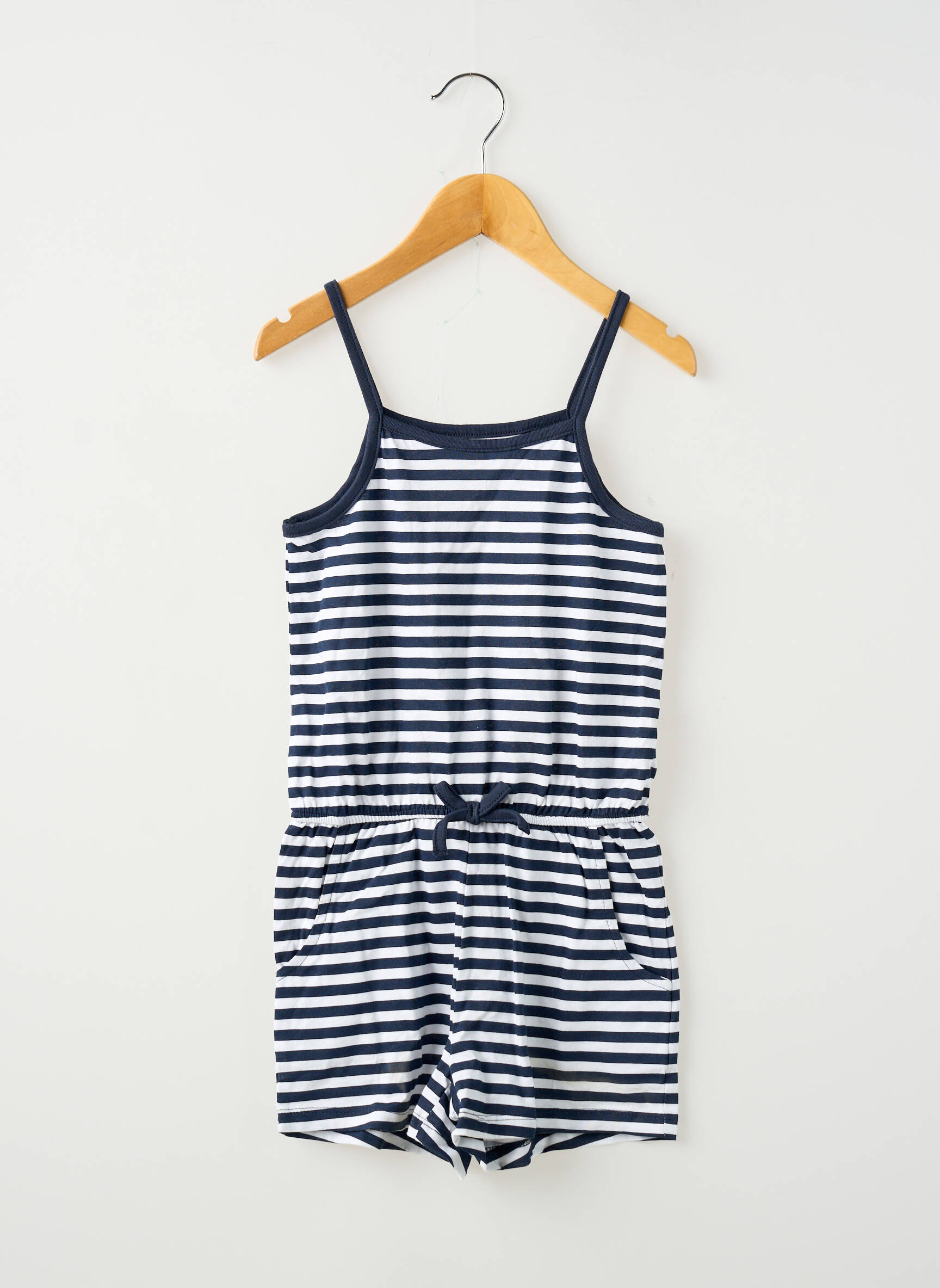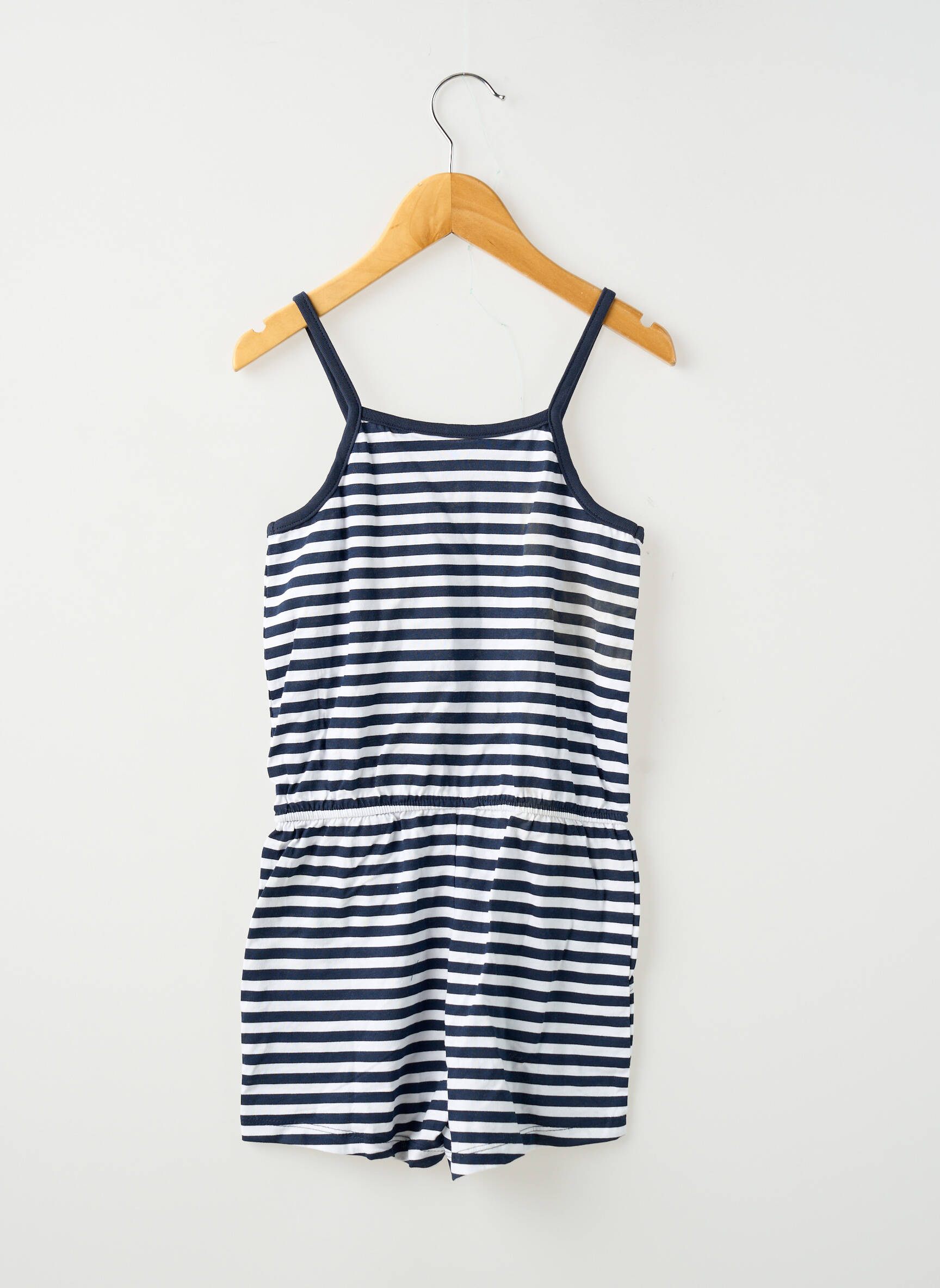 Voici un combishort de la marque NAME IT pour fille, parfait pour profiter d’un look tendance à petit prix. Ce modèle à fines bretelles présente un joli motif rayé bleu marine et blanc, avec une taille élastiquée ajustable par un petit nœud à la taille pour plus de confort. Léger et facile à porter, il constitue une option idéale pour des journées estivales sans se ruiner.