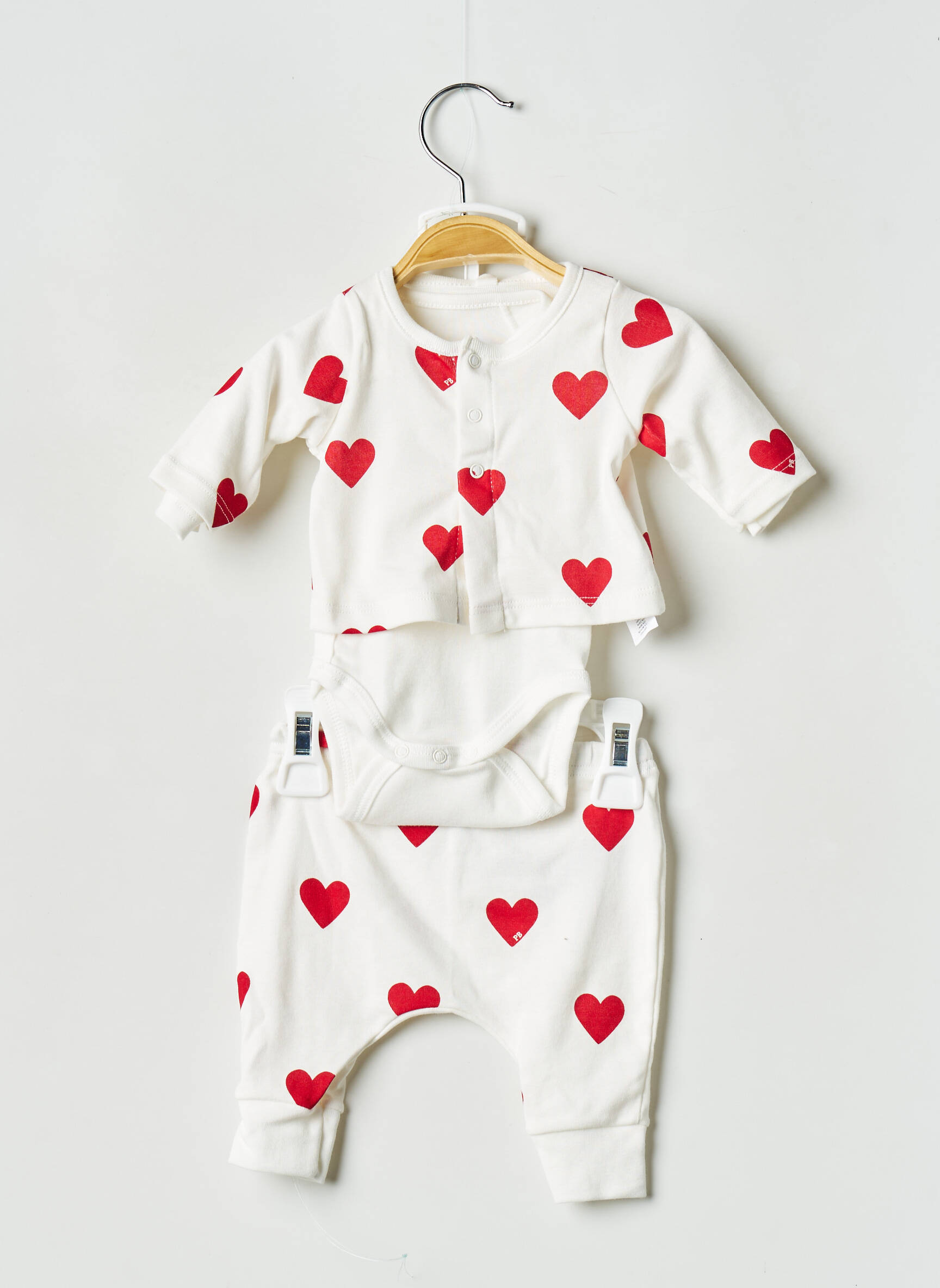 Voici une vraie opportunité d’habiller votre petite fille sans vous ruiner grâce à cet ensemble pantalon PETIT BATEAU, au design craquant avec ses jolis cœurs rouges sur fond blanc qui apportent une touche tendance et joyeuse. Cet ensemble composé d’un pantalon confortable, d’un body pratique et d’un petit gilet boutonné offre tout le confort et le style emblématique de la marque à prix mini, idéal pour faire plaisir sans se priver.