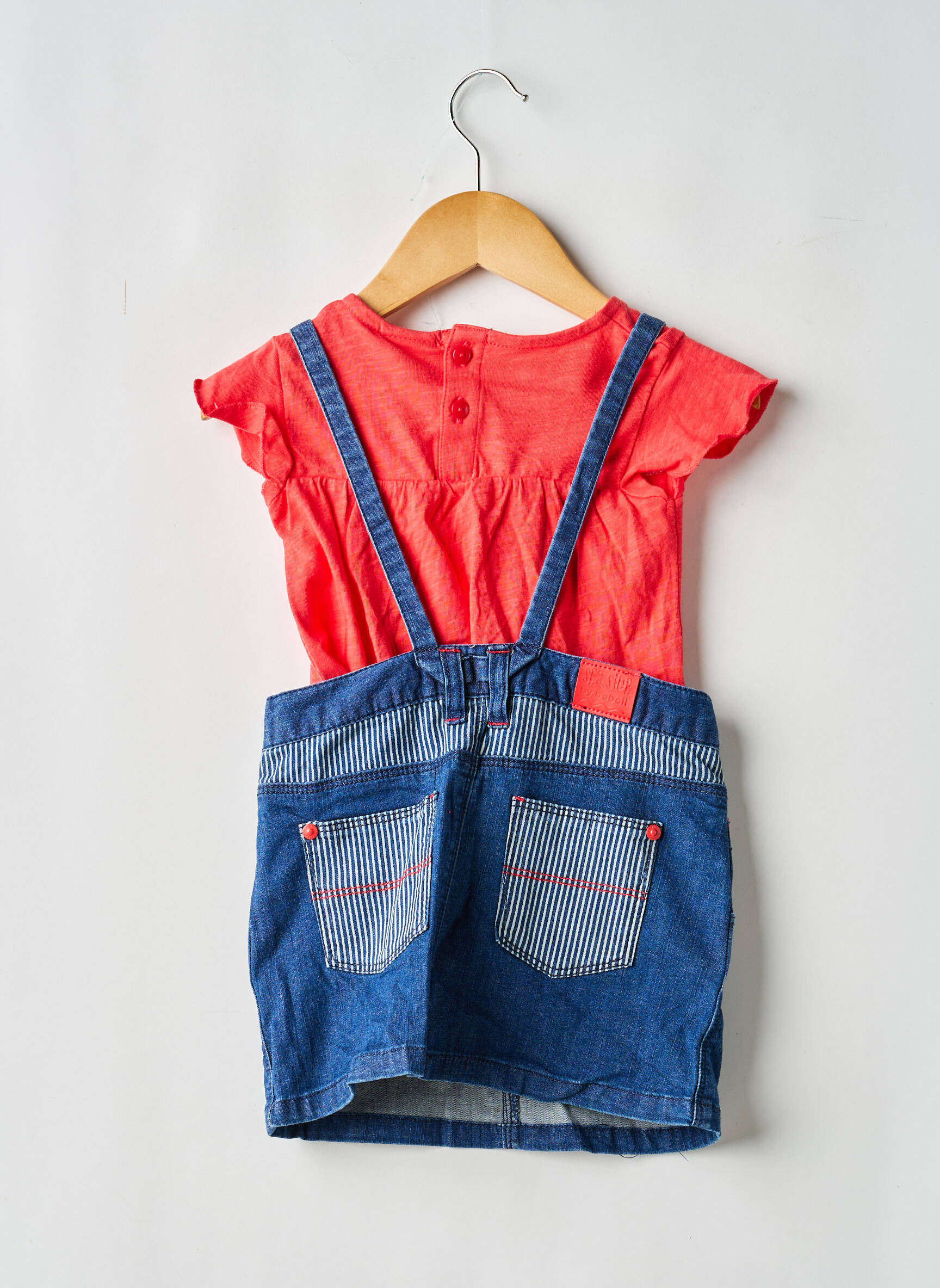 Profitez d’un super bon plan avec cet ensemble robe BOBOLI pour fille, composé d’un t-shirt corail vibrant associé à une salopette en denim à bretelles, idéale pour offrir à votre enfant un look tendance et décontracté à petit prix. Les détails rayés sur la poche centrale et les poches avant apportent une touche d’originalité tout en restant faciles à porter au quotidien. Ce duo malin vous garantit le style et la praticité sans vous ruiner, parfait pour renouveler la garde-robe des petites à moindre coût.