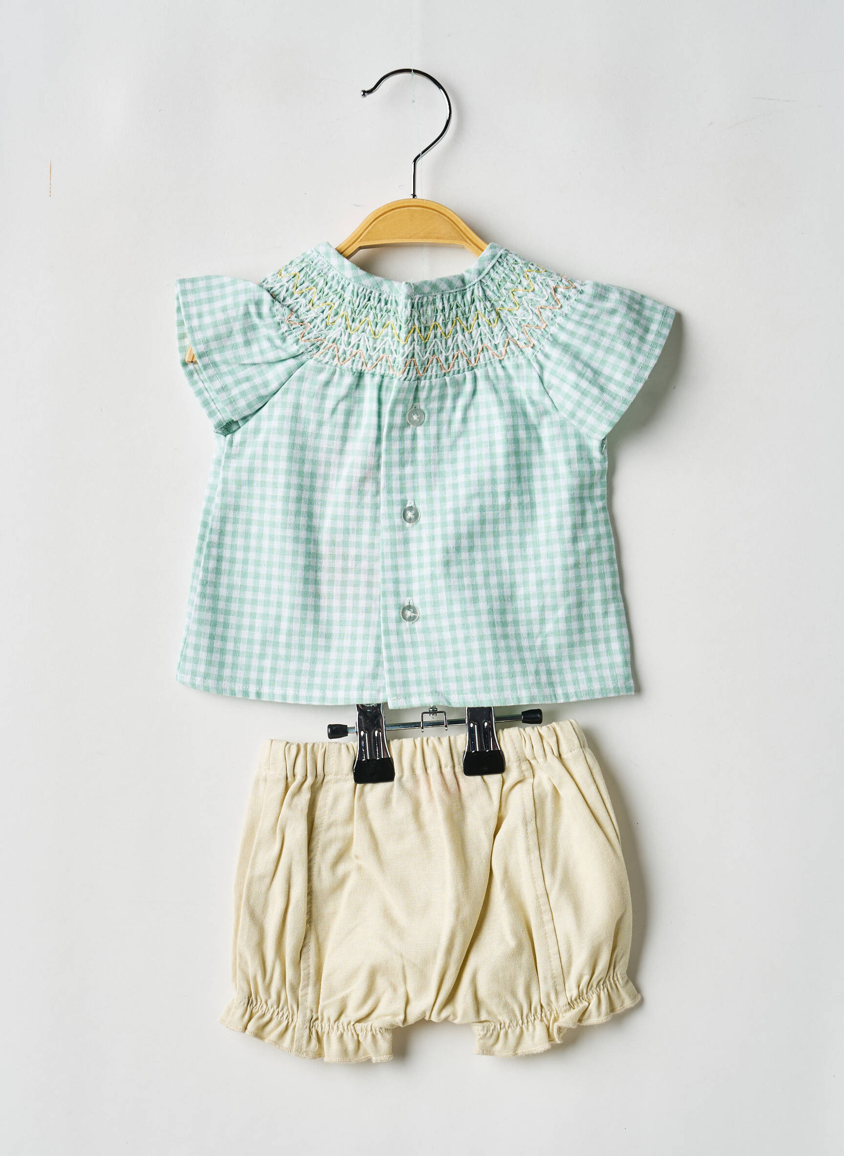 Craquez pour cet ensemble short BOBOLI pour fille, un vrai bon plan pour habiller votre enfant avec style sans vous ruiner. La blouse à carreaux pastel avec smocks délicats sur le col s’associe parfaitement au short beige à boutons décoratifs, pour un look frais et confortable idéal pour les beaux jours. Profitez d’un prix mini pour offrir à votre petite fille une tenue tendance et de qualité, tout en réalisant de belles économies.