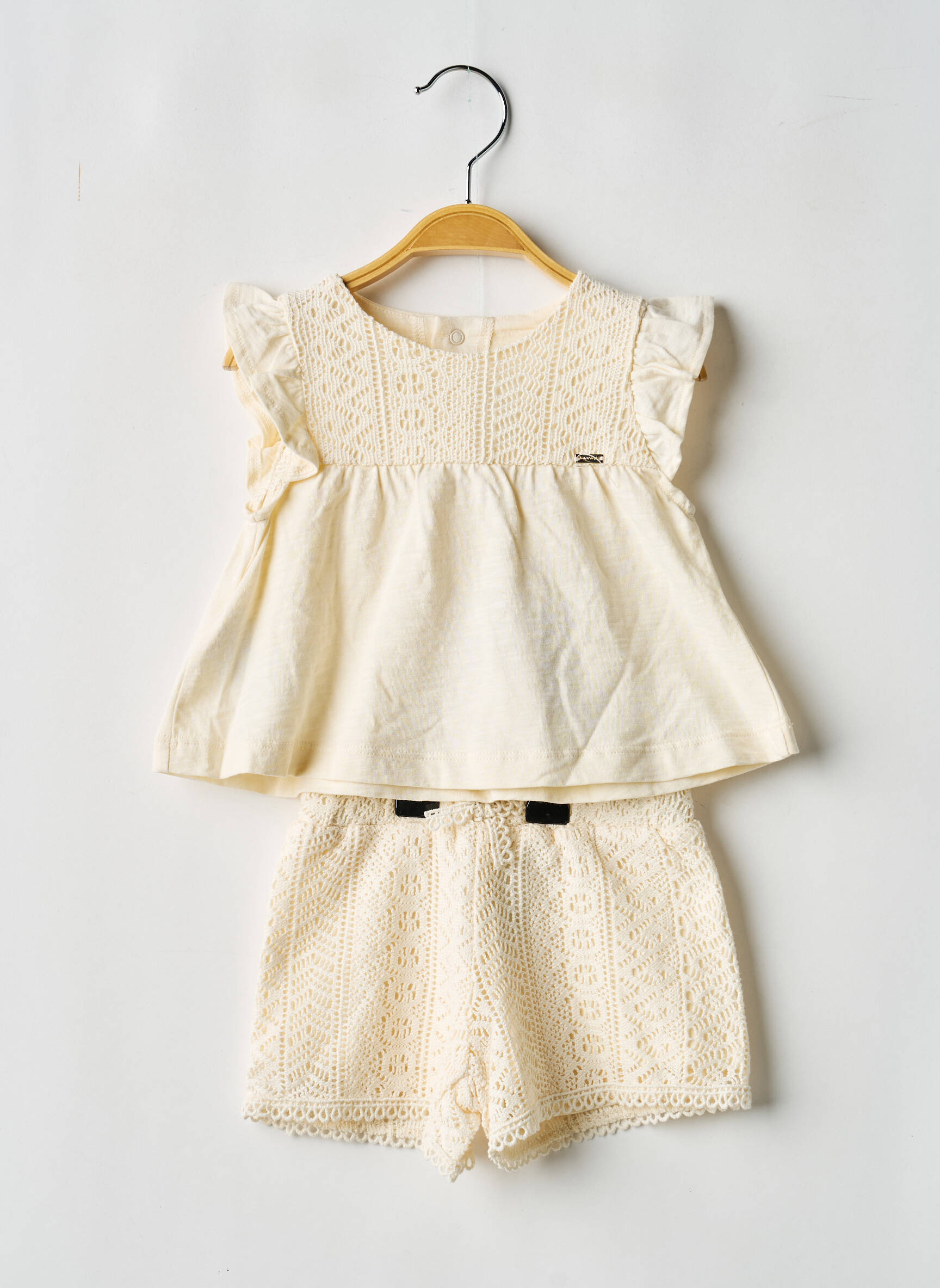 Profitez d’un vrai bon plan avec cet ensemble short pour fille de la marque MAYORAL : une tenue aussi craquante qu’abordable ! Le haut sans manches séduit par ses délicats volants et ses détails ajourés, tandis que le short coordonné affiche une belle finition en dentelle, parfaite pour les journées ensoleillées. Un choix malin pour allier élégance et petits prix, idéal pour offrir ou renouveler la garde-robe estivale de votre enfant sans se ruiner.
